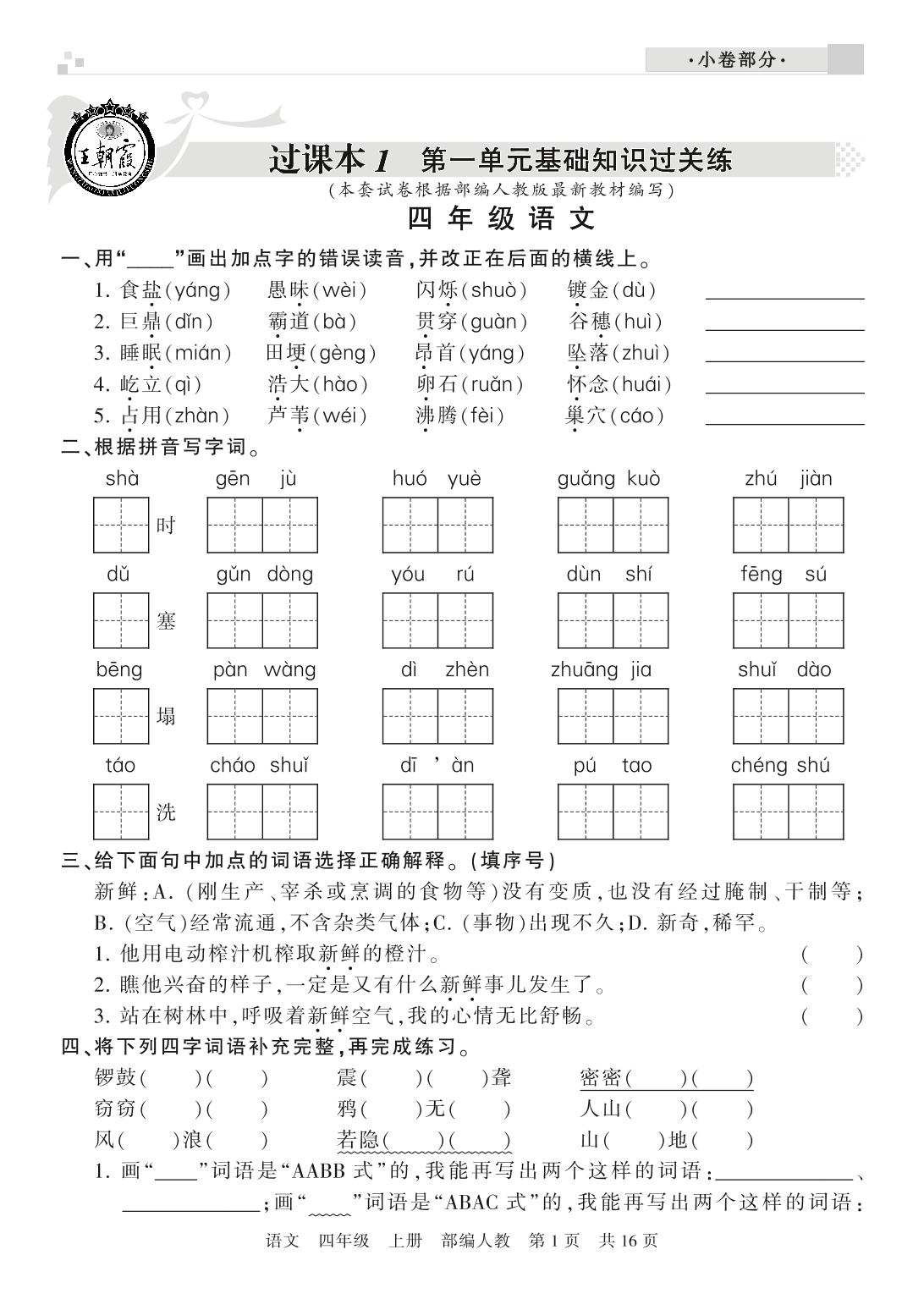 王朝霞期末过课本——基础知识过关练四年级上册语文(人教版)_R210801194954【0】