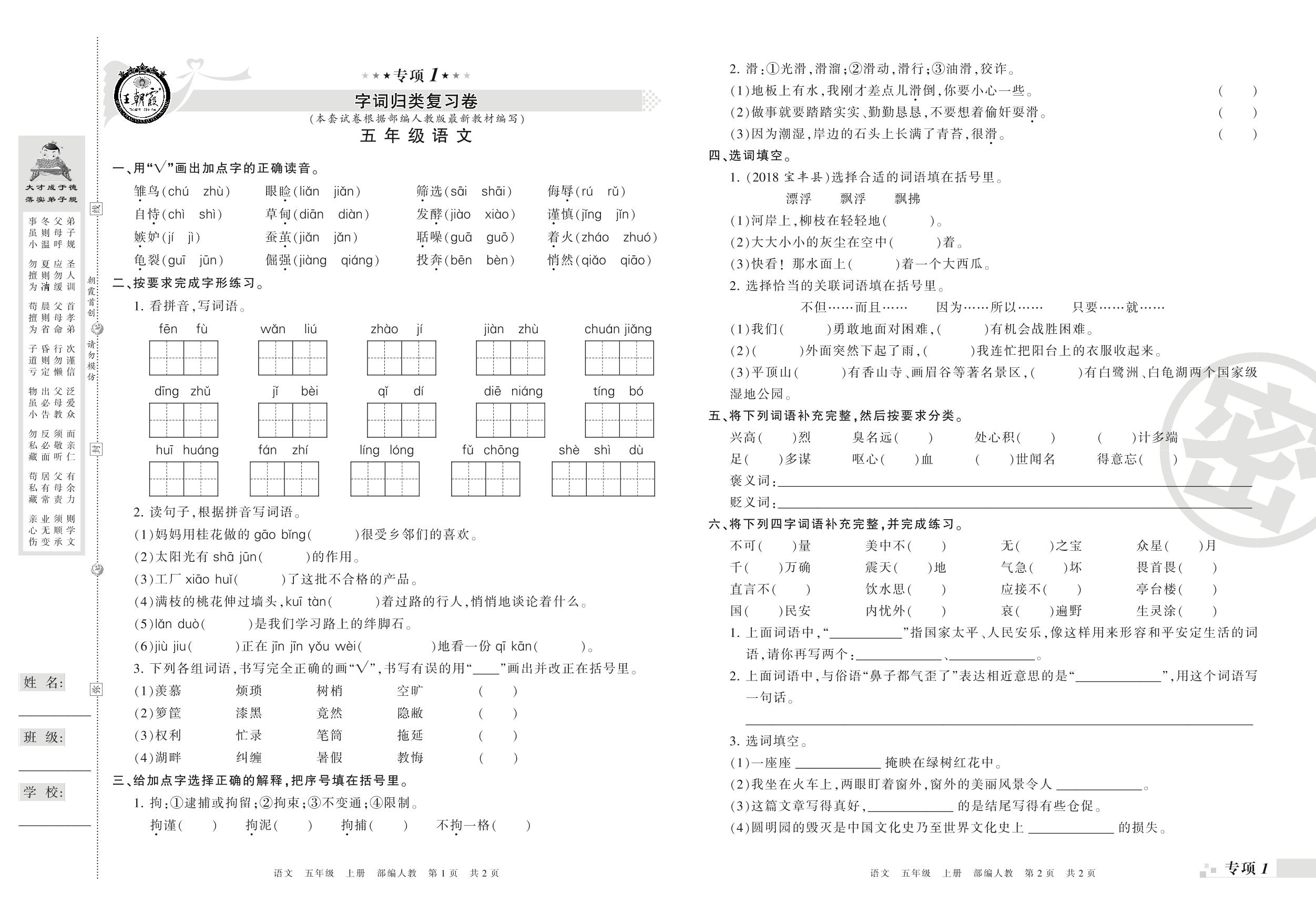 王朝霞期末专项卷——字词、句子与口语交际真题归类复习卷五年级上册语文(人教版)_R210801195111【0】