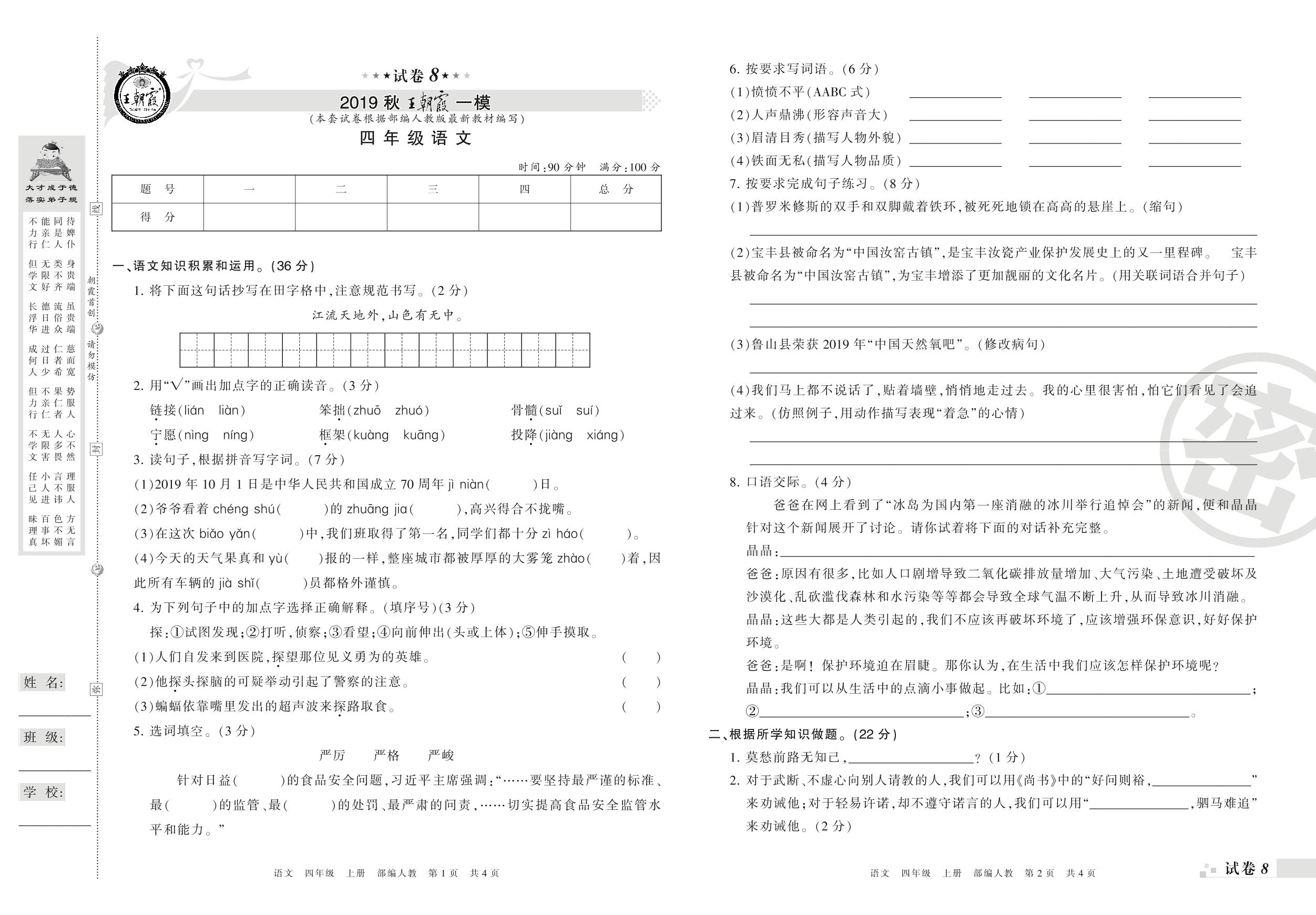 王朝霞期末模拟卷四年级上册语文(人教版)_R210801195244【8】