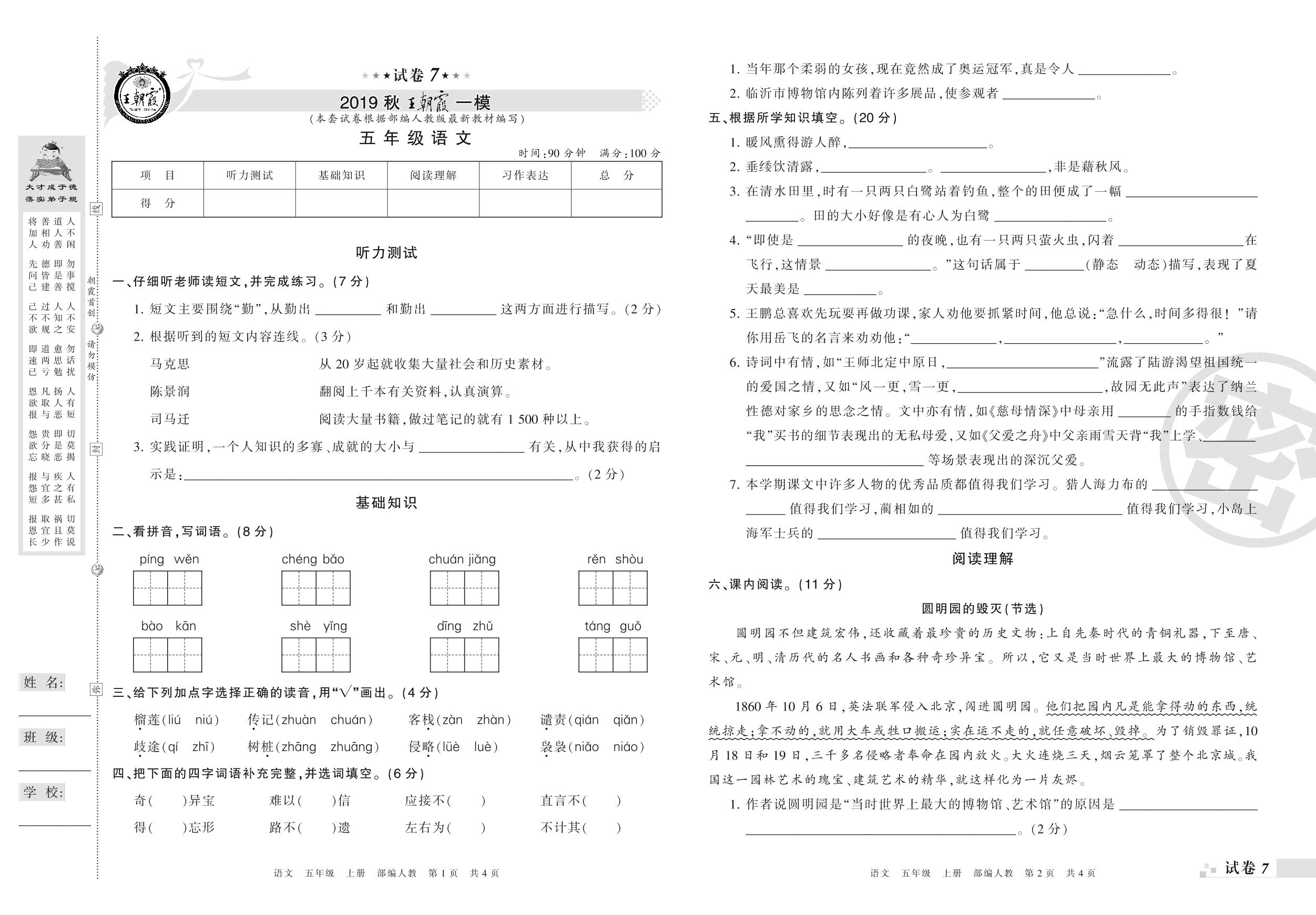 王朝霞期末模拟卷五年级上册语文(人教版)_R210801195338【7】