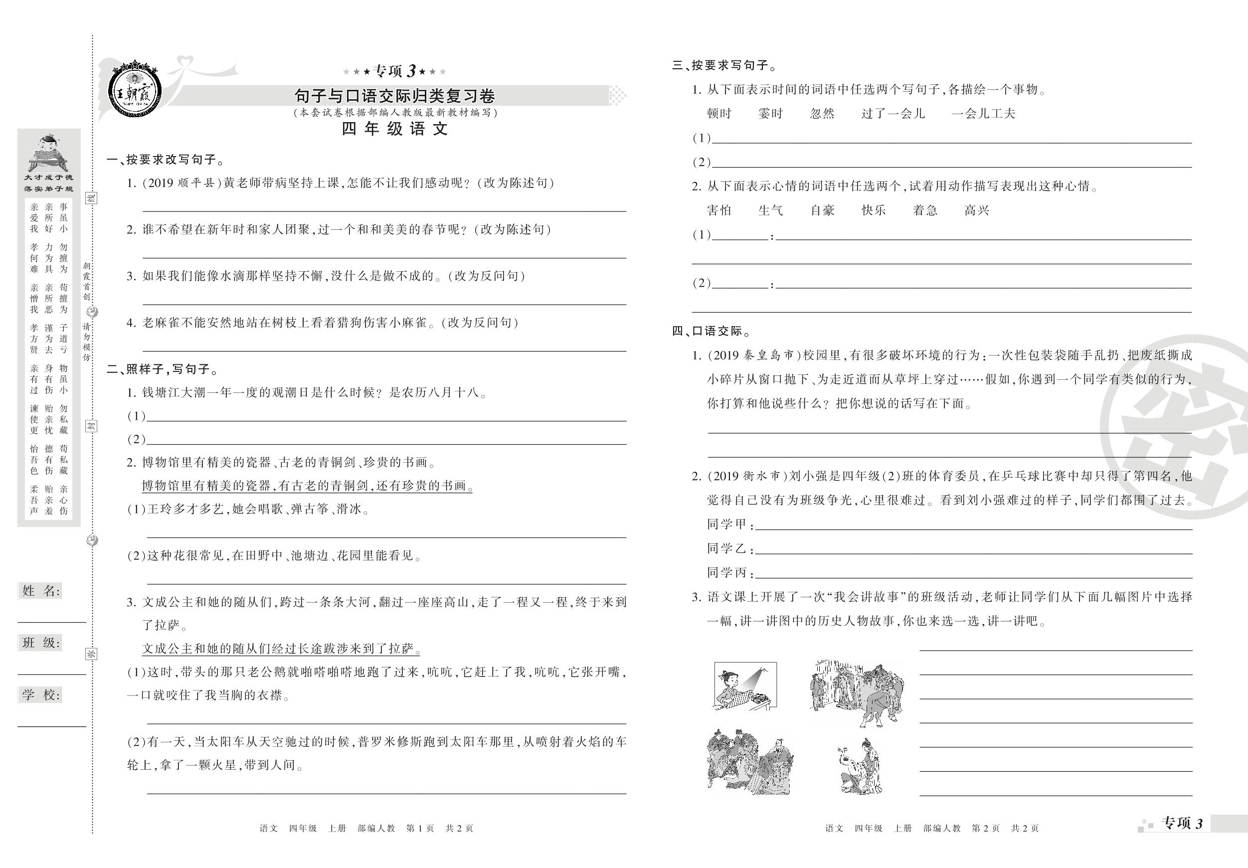 王朝霞期末专项卷——句子与口语交际、课文内容真题归类复习卷四年级上册语文(人教版)_R210801195351【0】