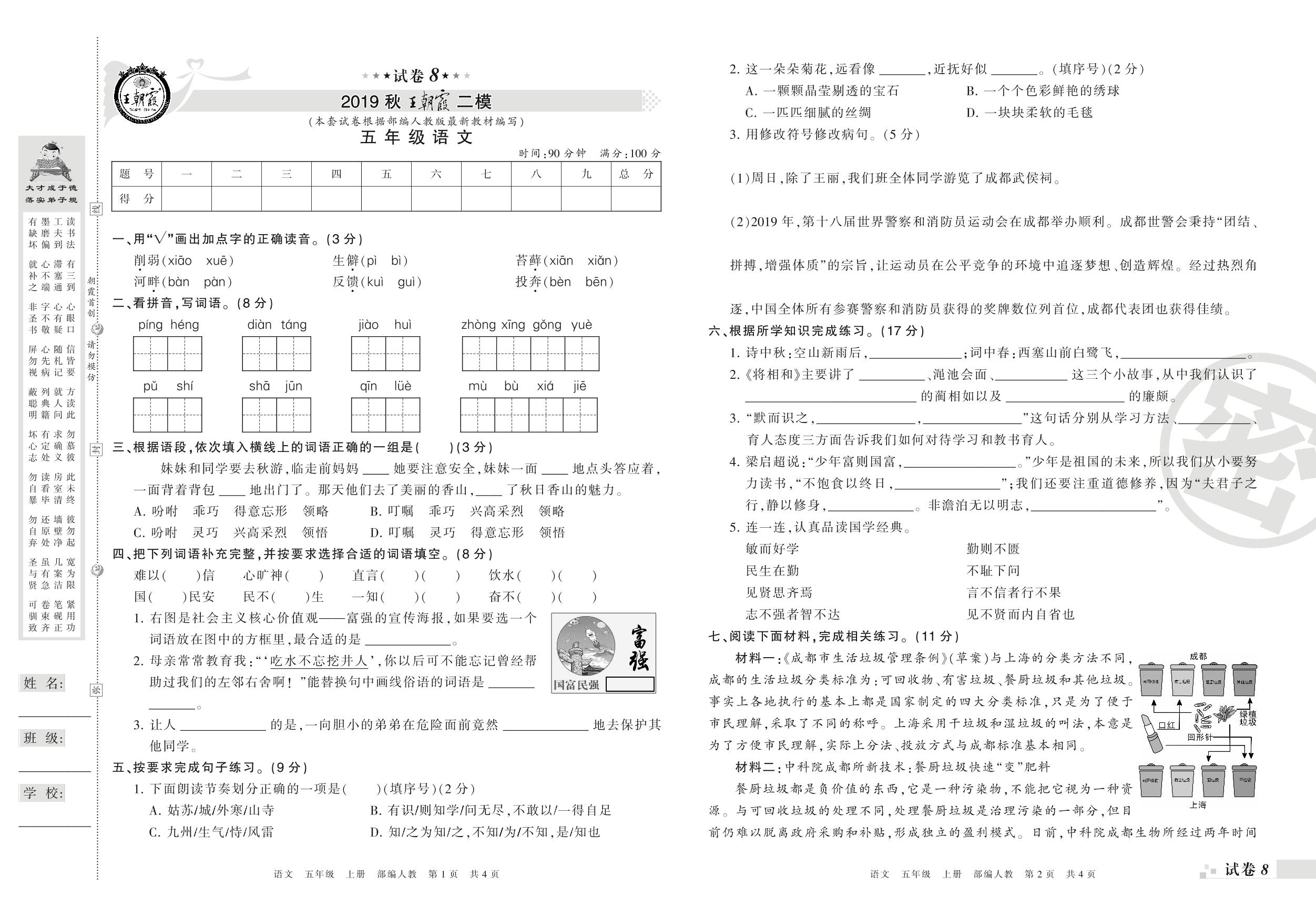 王朝霞期末模拟卷五年级上册语文(人教版)_R210801195517【8】