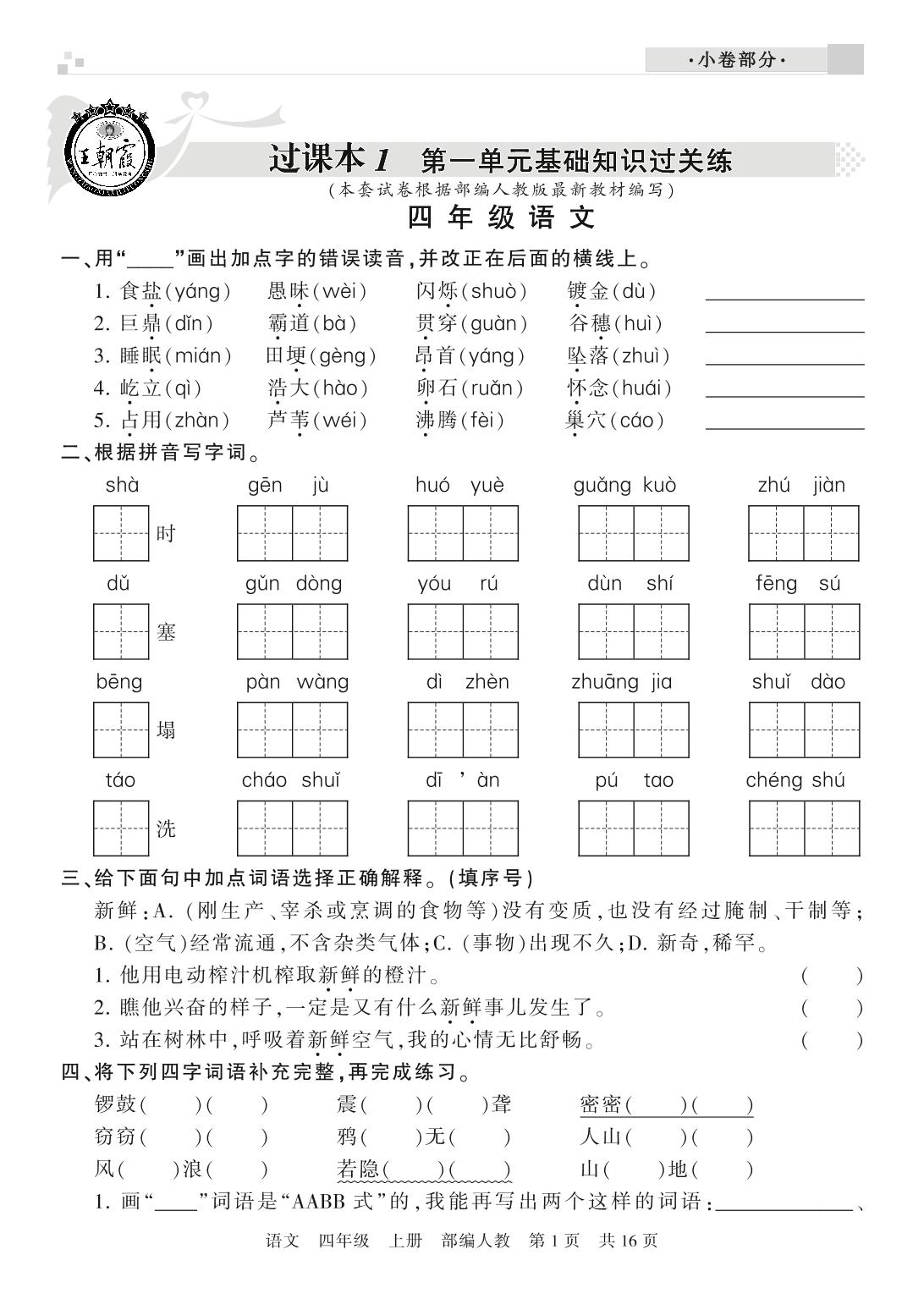 王朝霞期末过课本——基础知识过关练四年级上册语文(人教版)_R210801195522【0】