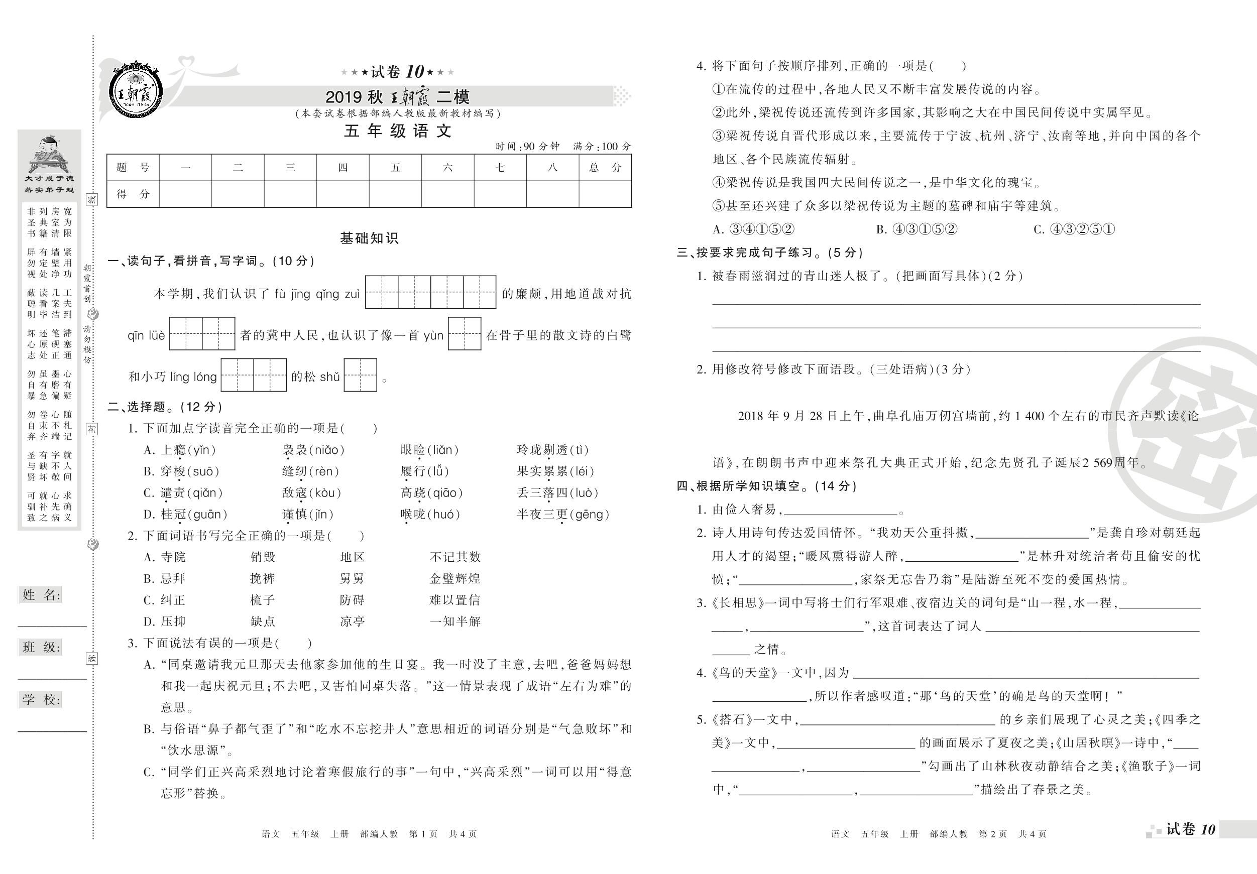 王朝霞期末模拟卷五年级上册语文(人教版)_R210801195657【10】