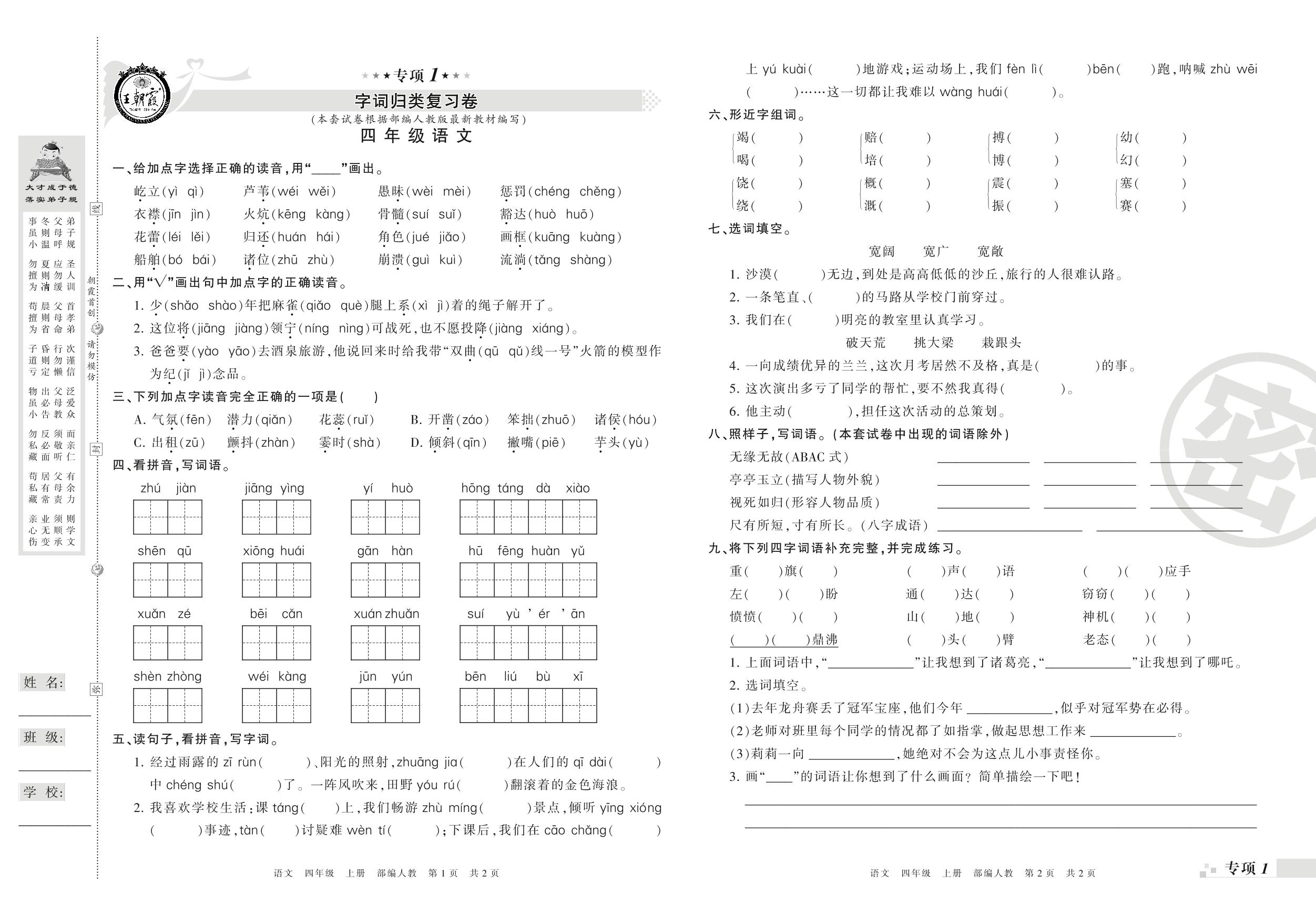 四年级语文人教版上册专项卷
