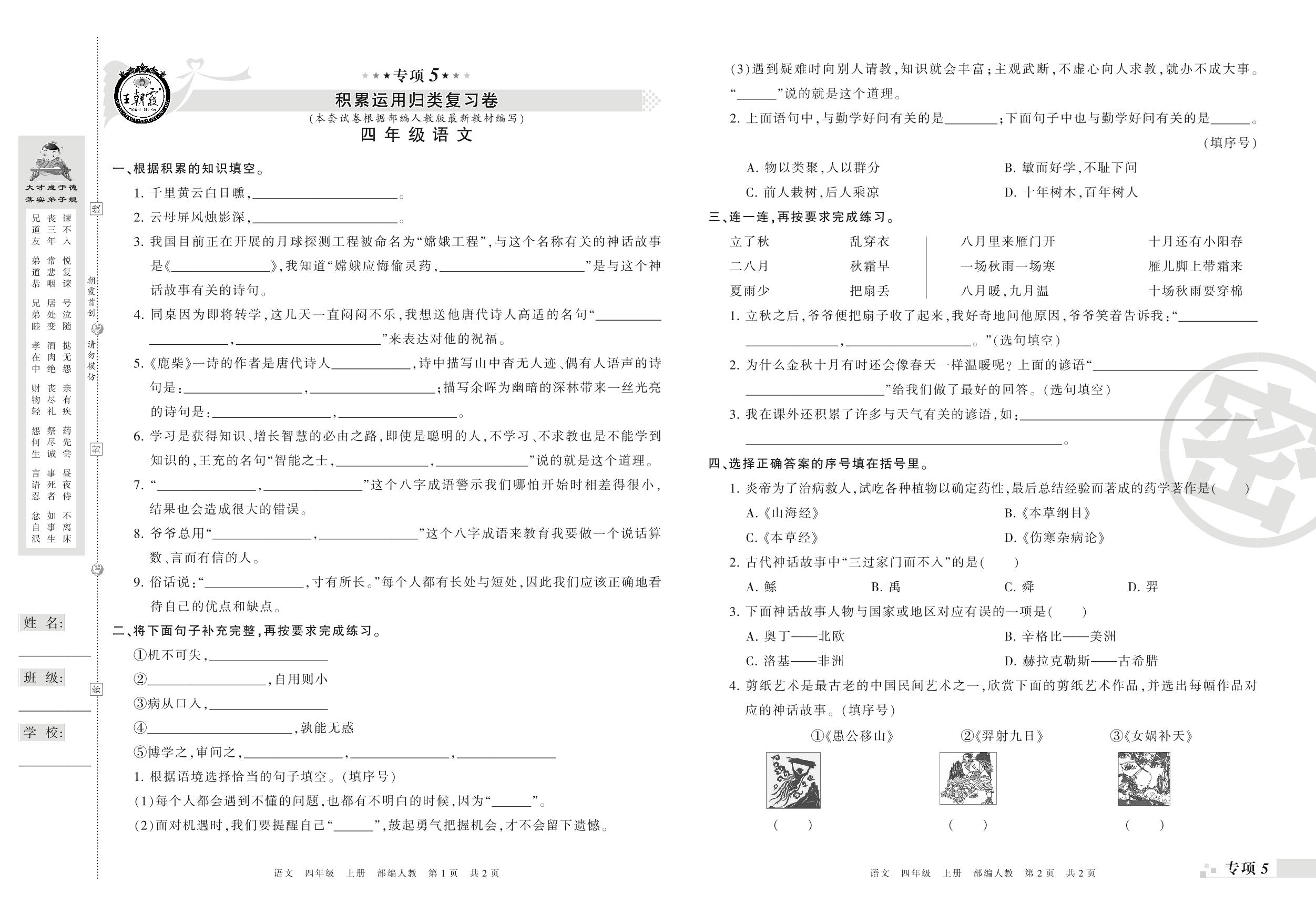 王朝霞期末专项卷——积累运动、课内阅读归类复习四年级上册语文(人教版)_R210801195841【0】
