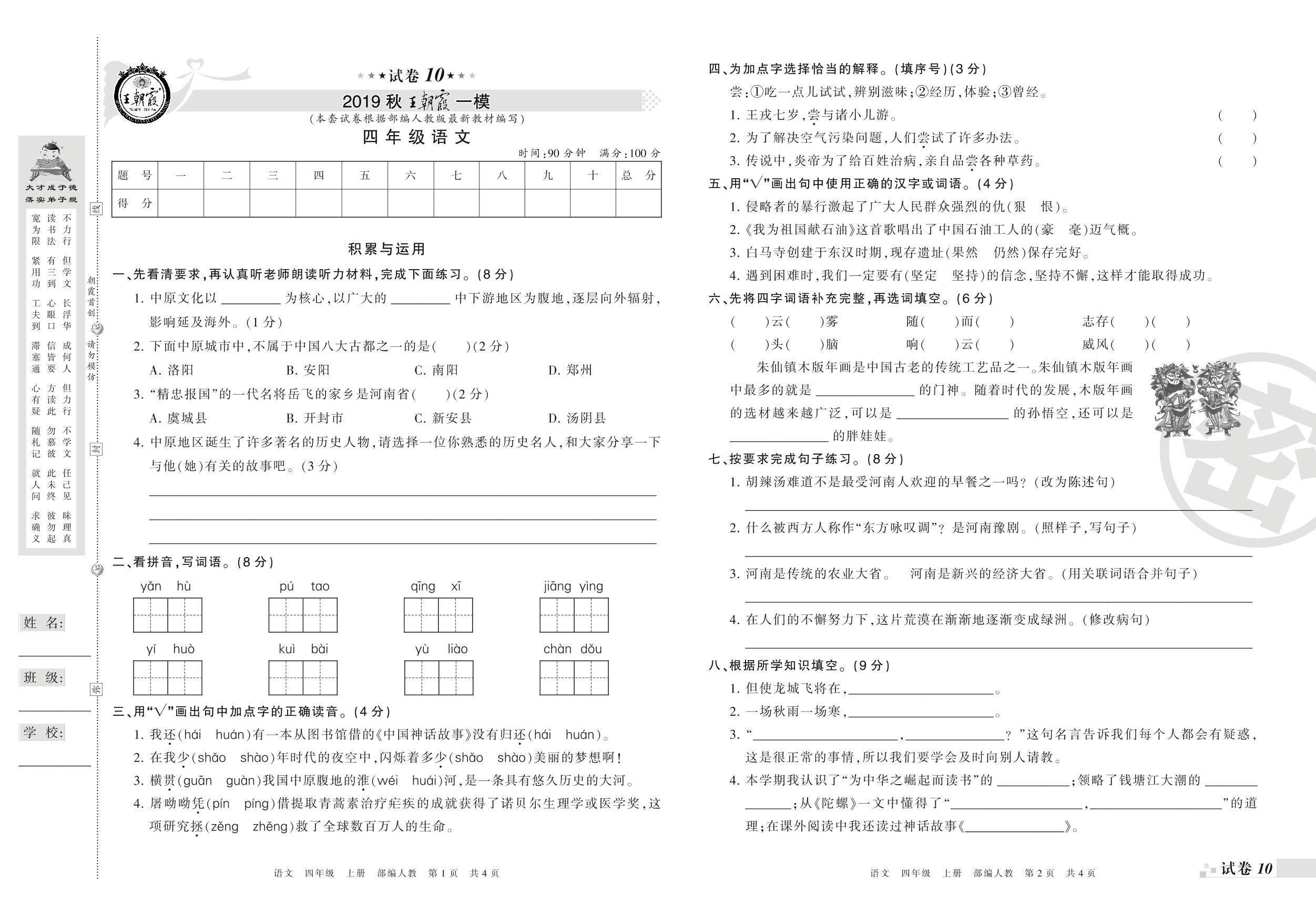 王朝霞期末模拟卷四年级上册语文(人教版)_R210801195918【10】
