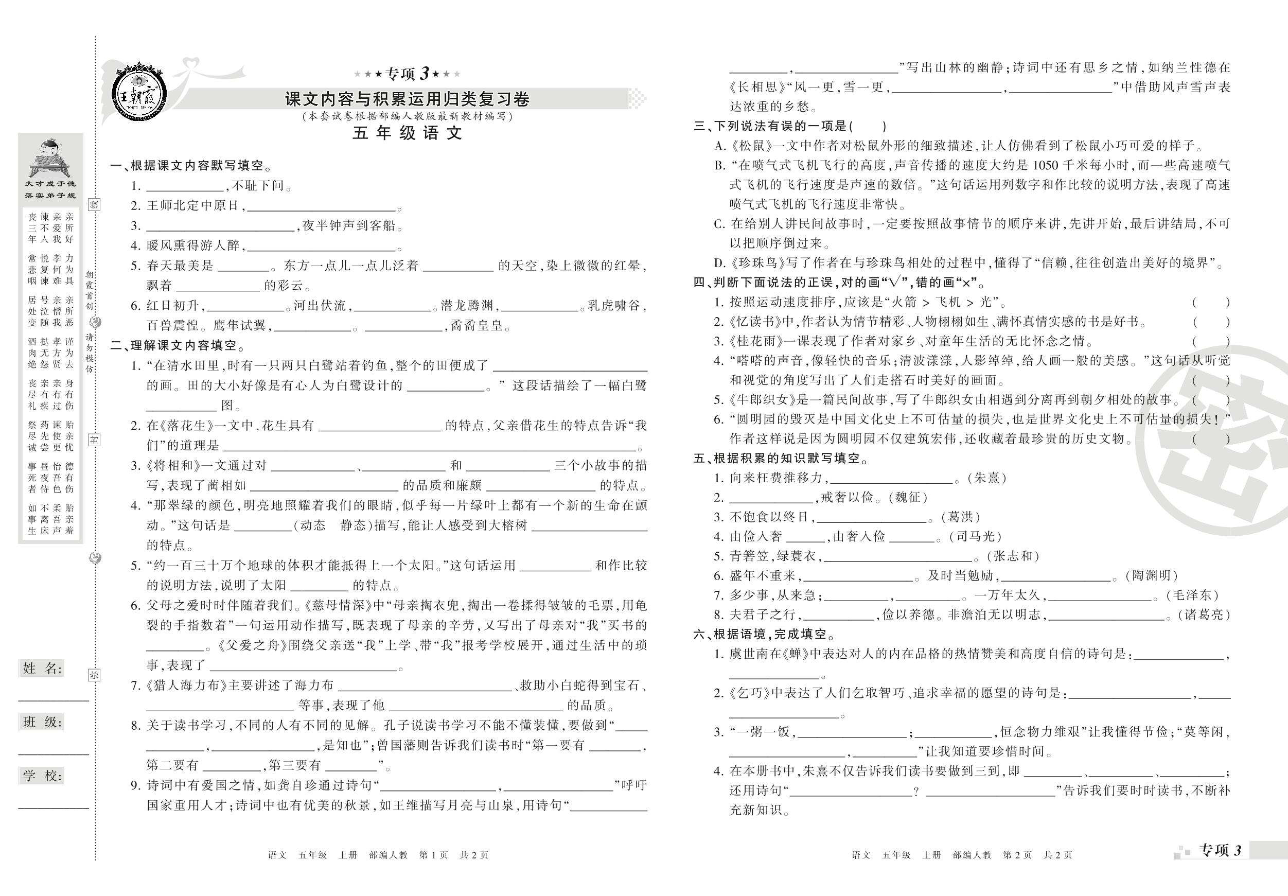 王朝霞期末专项卷——课文内容与积累运用、课内阅读与写作归类复习五年级上册语文(人教版)_R210801195934【0】