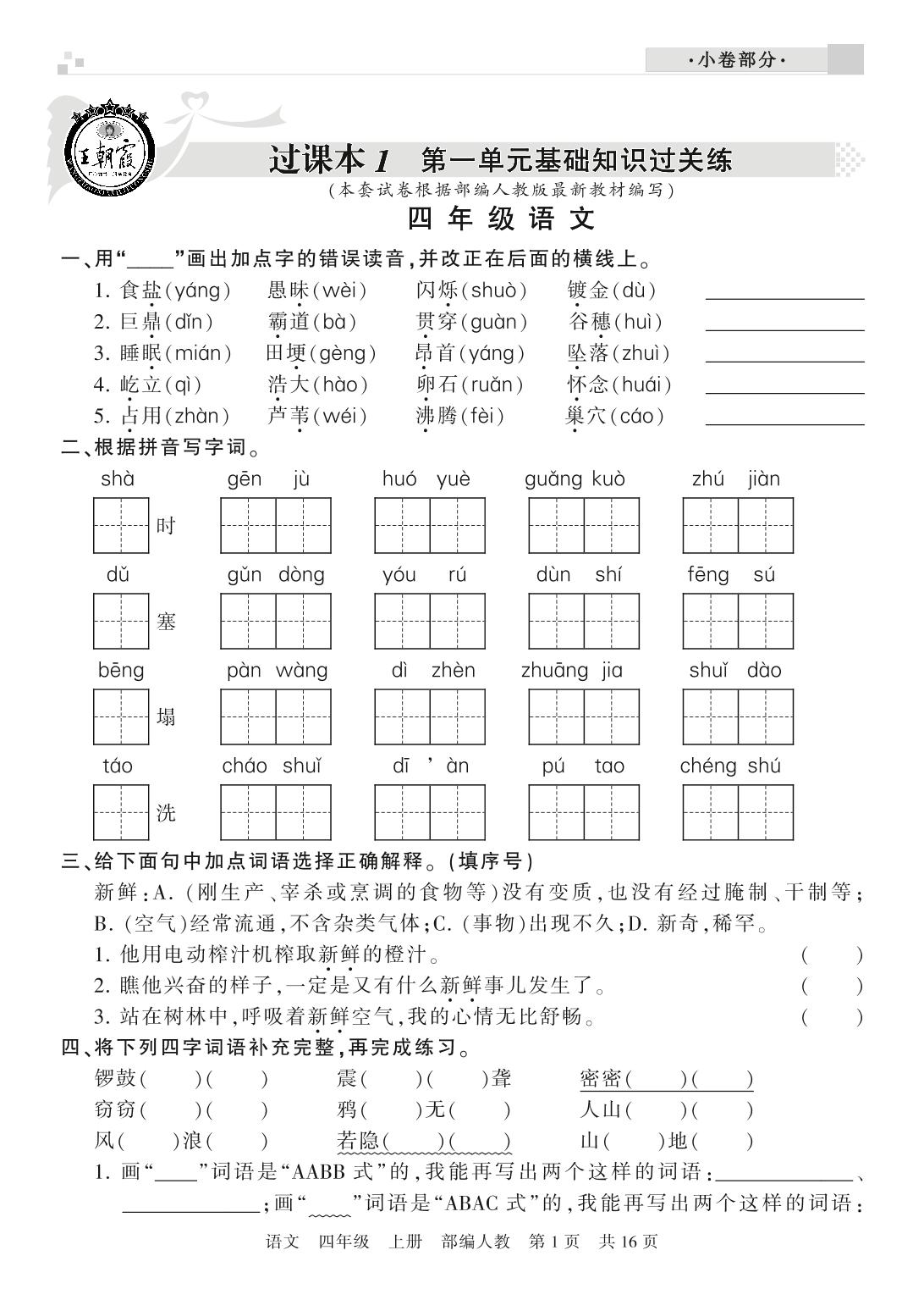 王朝霞期末过课本——基础知识过关练四年级上册语文(人教版)_R210801200008【0】