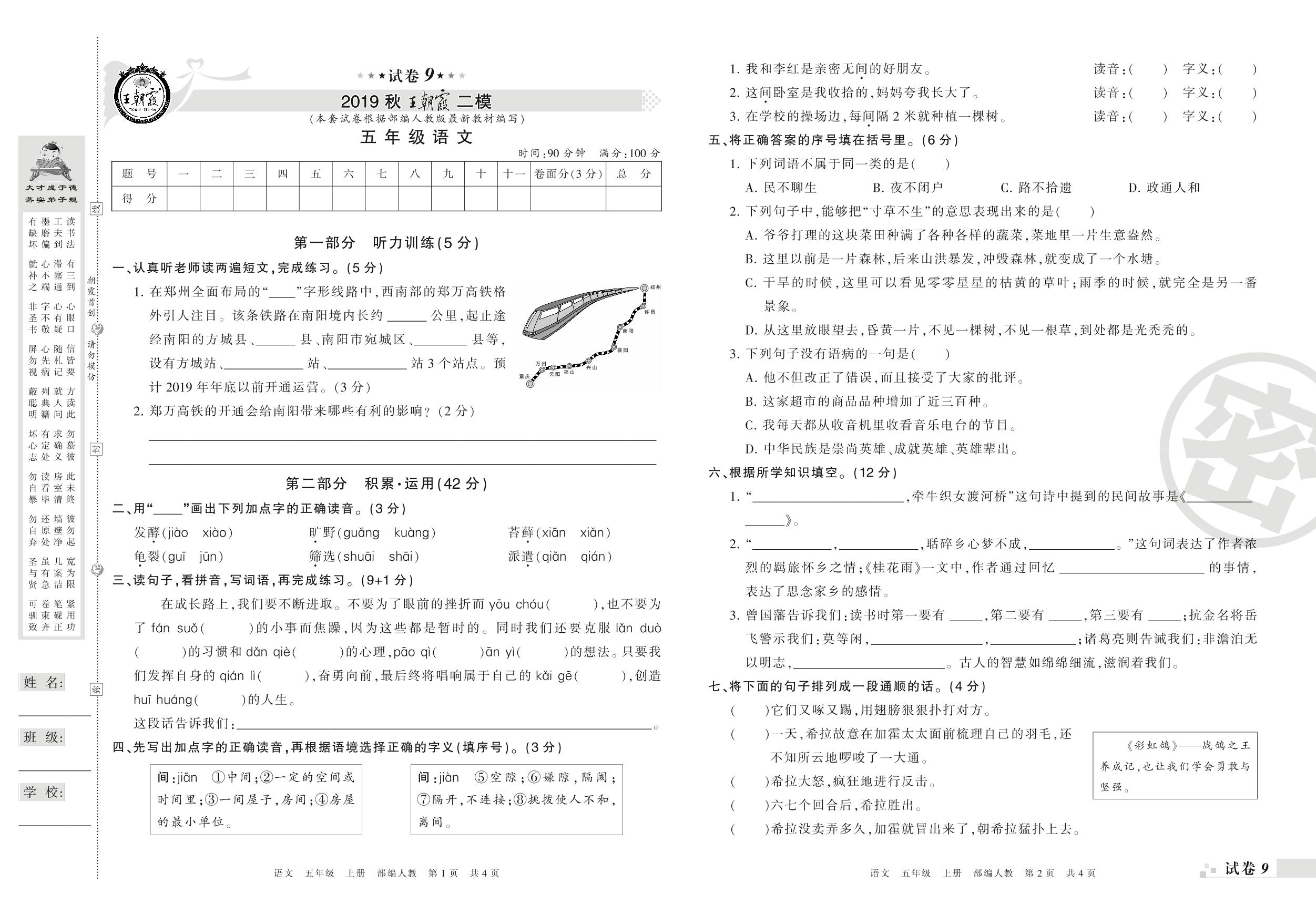 王朝霞期末模拟卷五年级上册语文(人教版)_R210801200130【9】