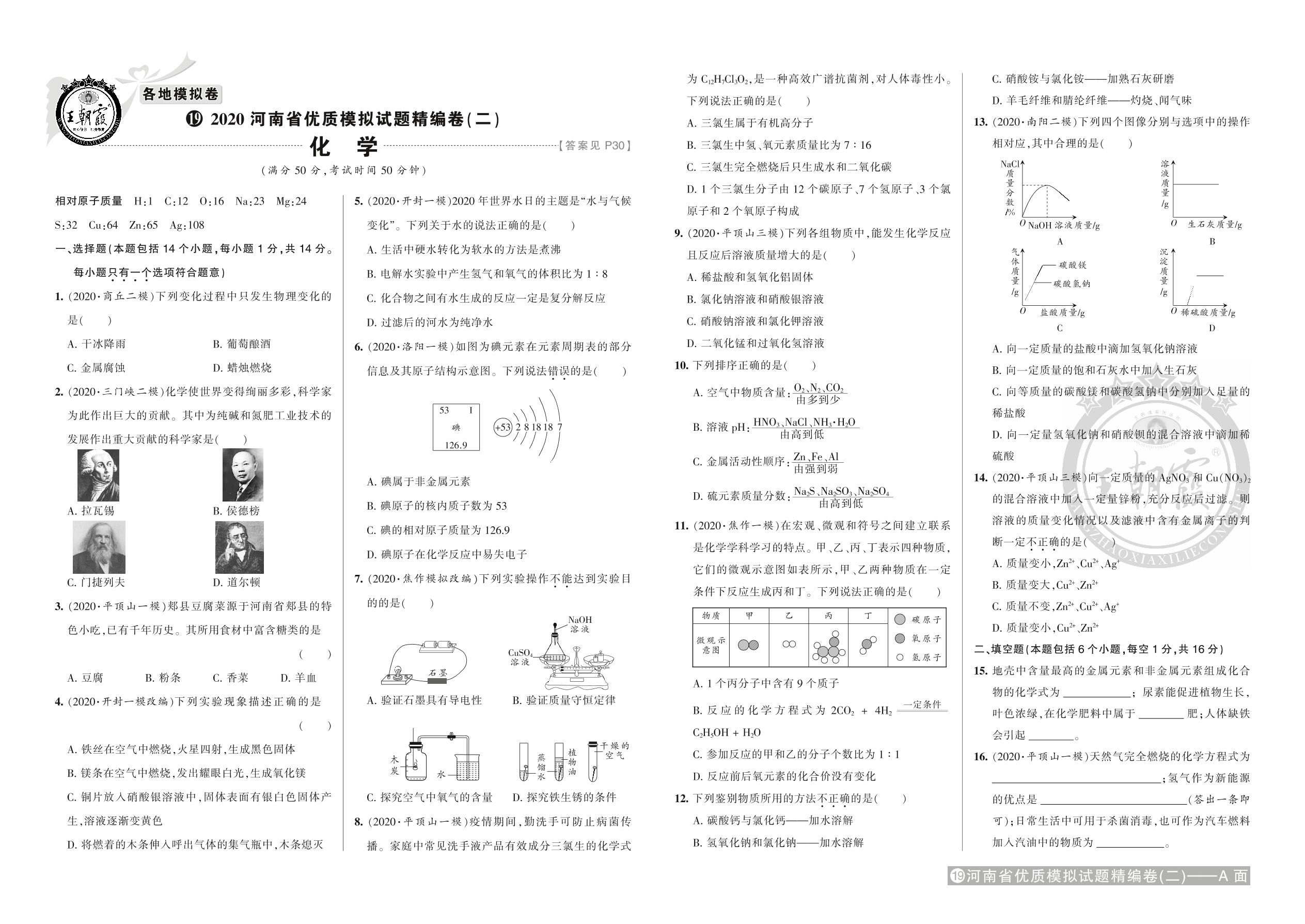 2020河南省优质模拟试题精编卷(二)化学【19】