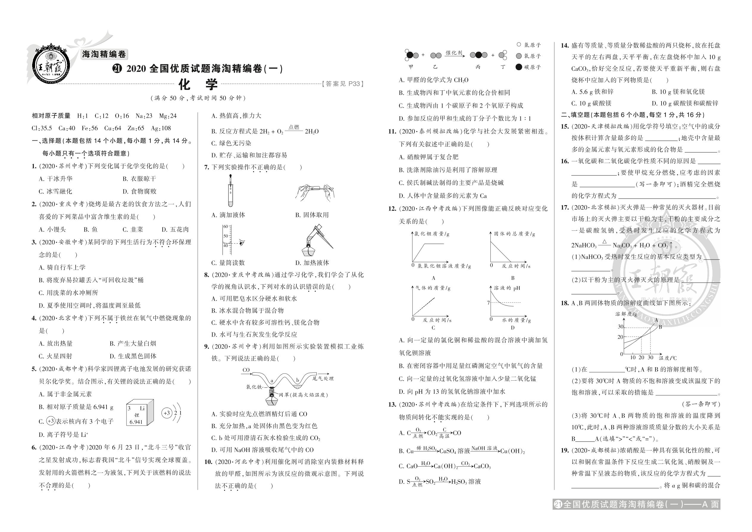 2020全国优质试题海淘精编卷(一)化学【21】