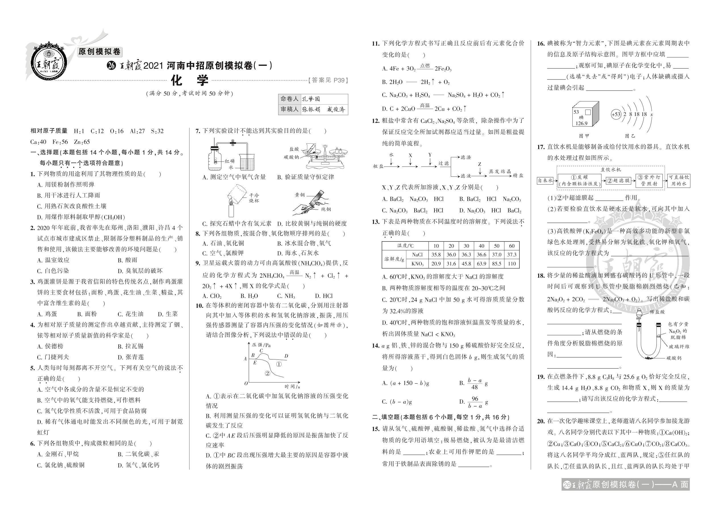 王朝霞2021河南中招原创模拟卷(一)化学【26】