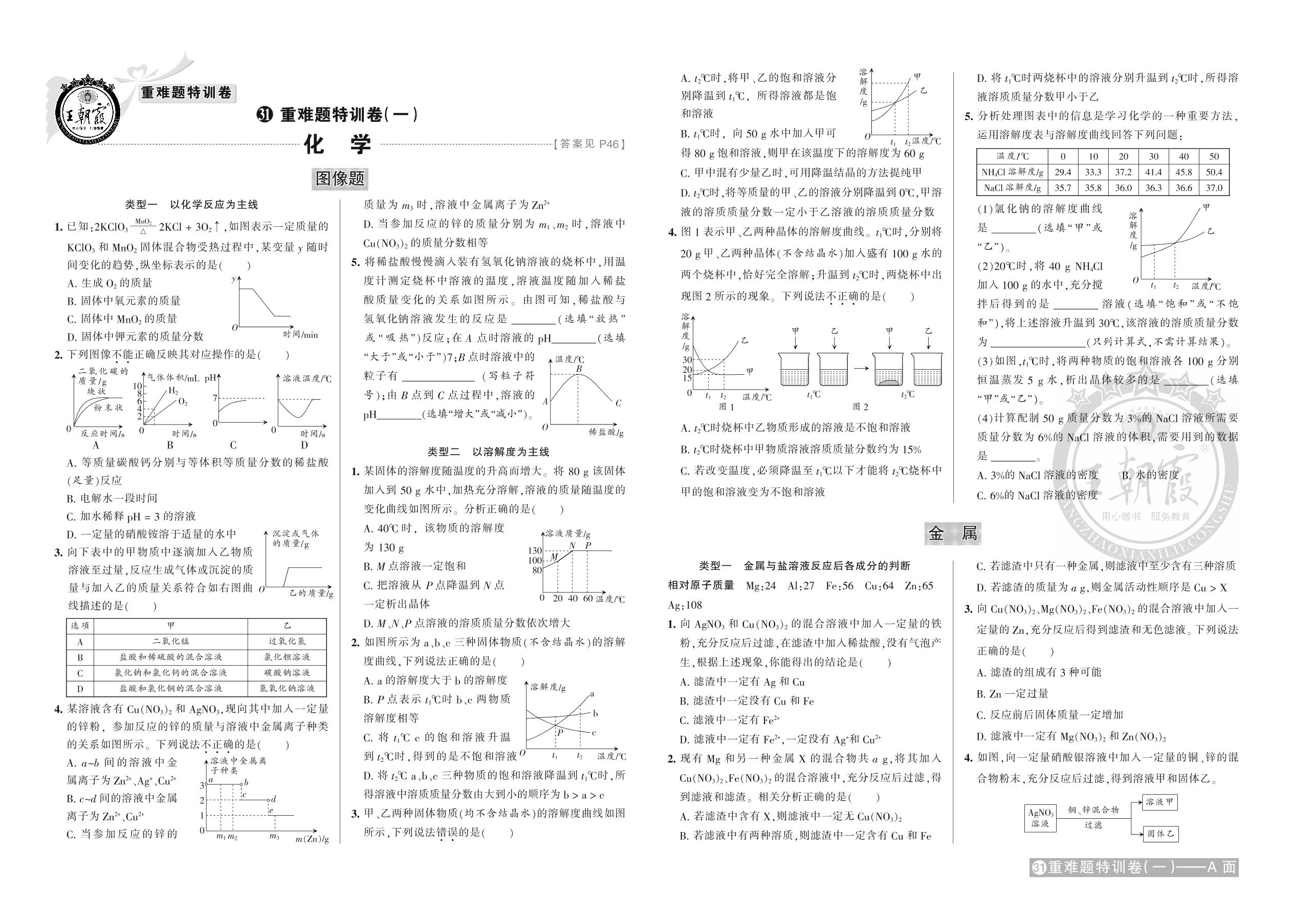 2021年河南中考化学重难题特训卷(一)图像题 金属【31】
