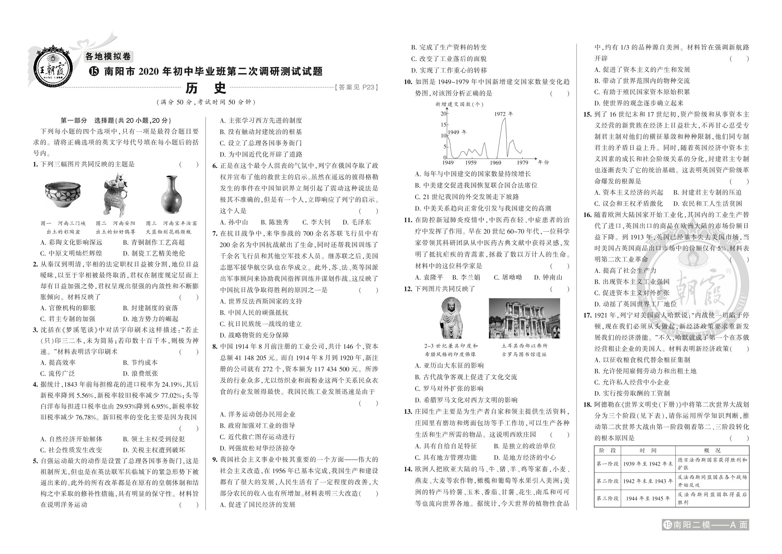 南阳市2020年初中毕业班第二次调研测试试卷历史【15】