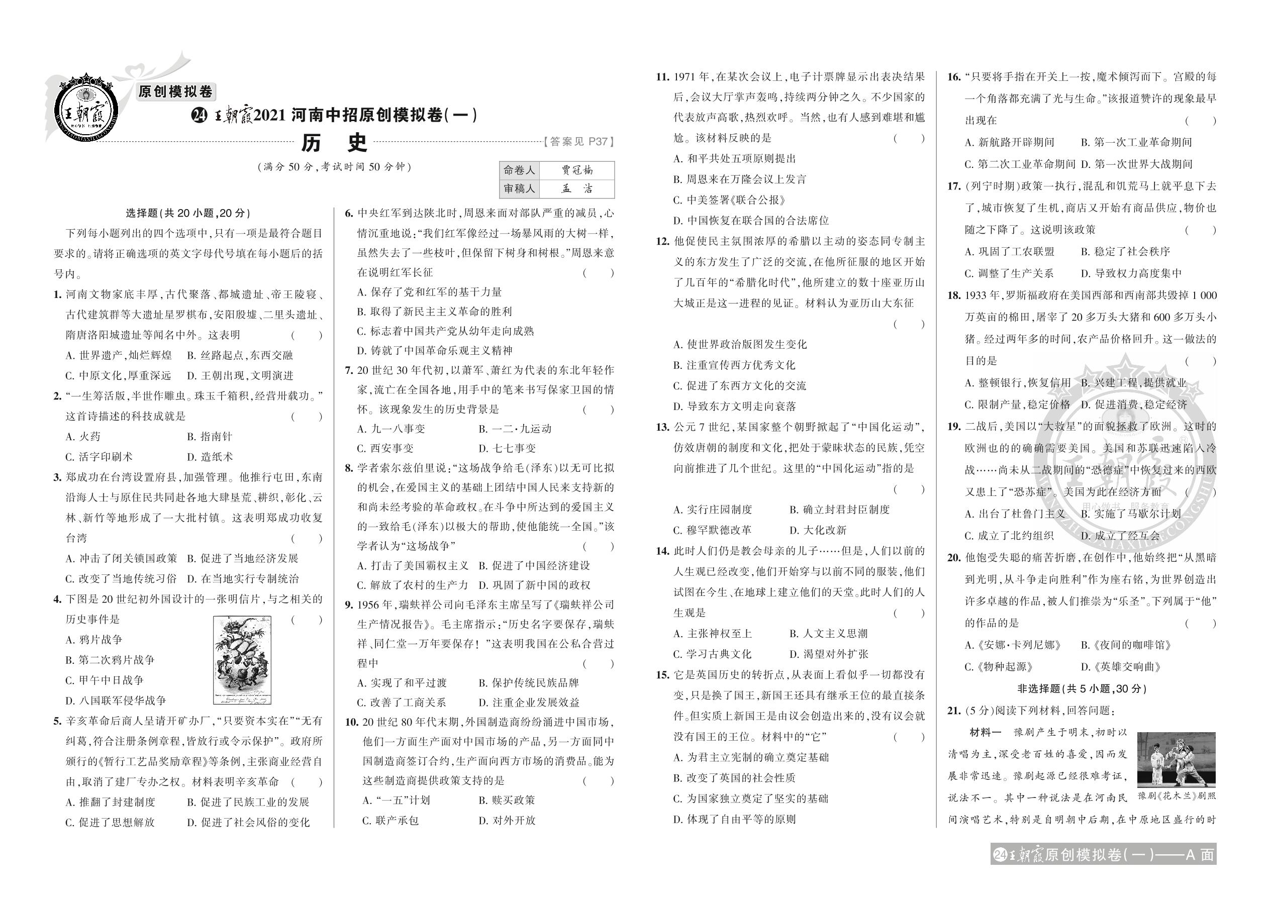 王朝霞2021河南中招原创模拟卷(一)历史【24】