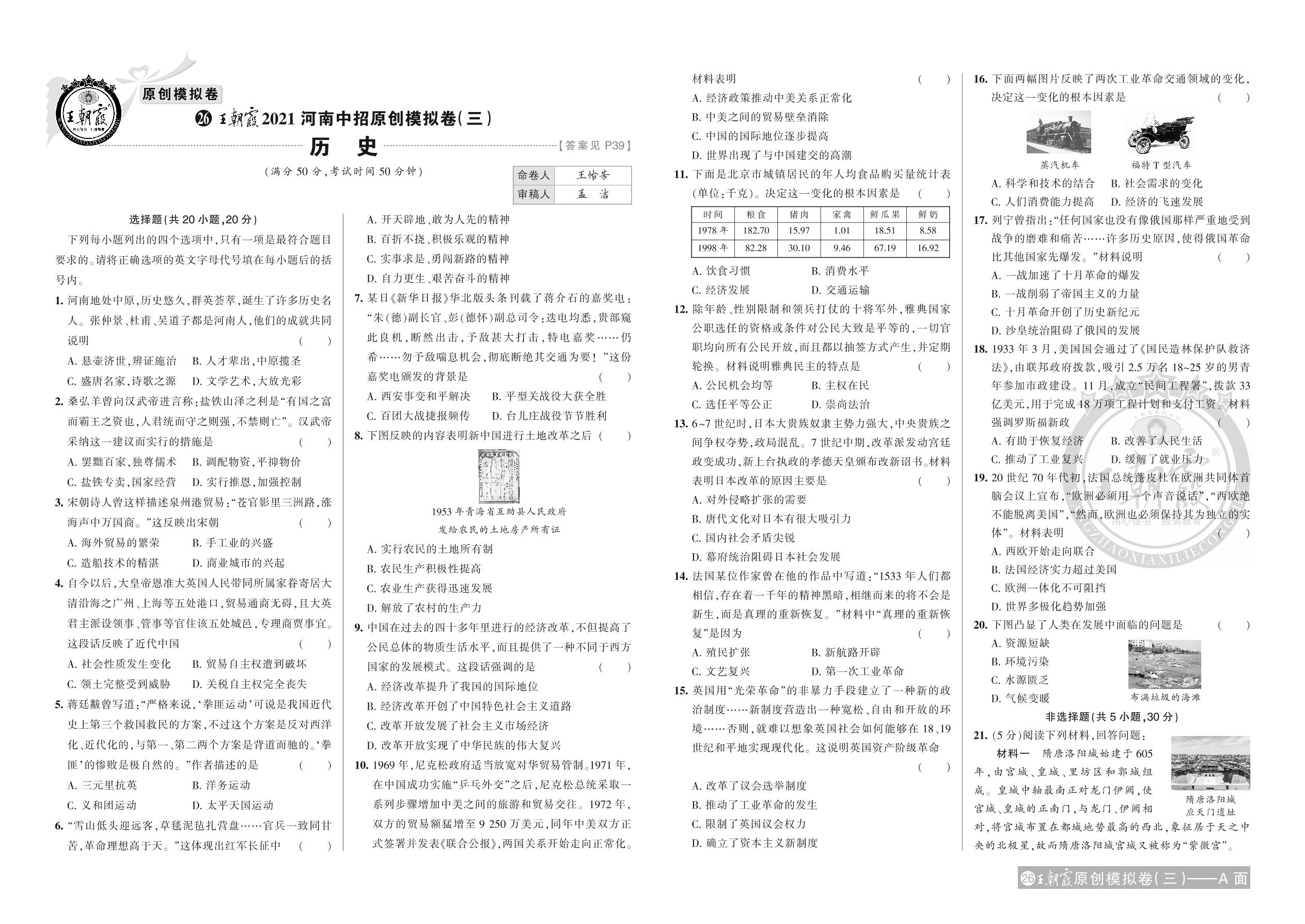 王朝霞2021河南中招原创模拟卷(三)历史【26】