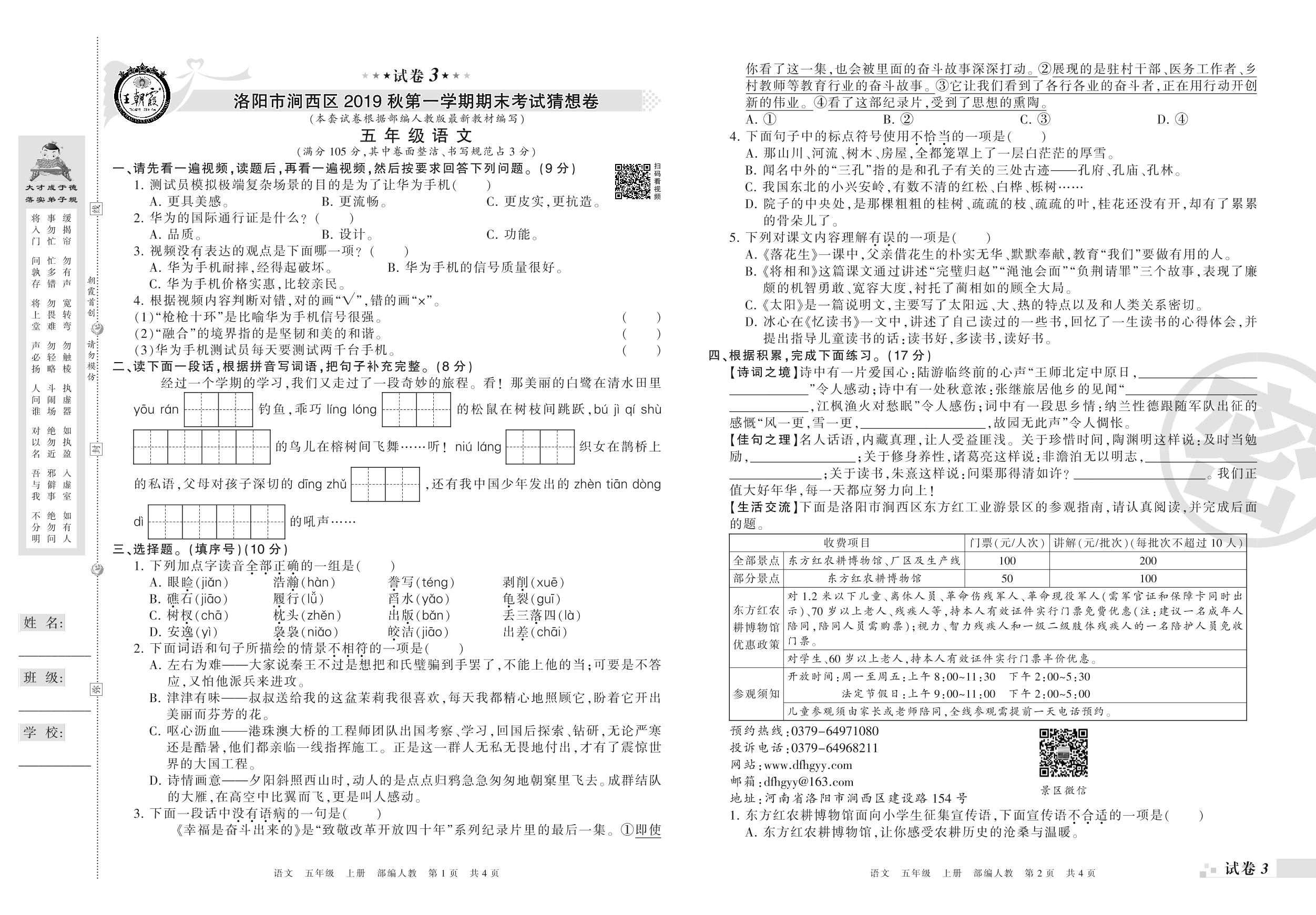 2019-2020学年第一学期洛阳市涧西区猜想卷五年级语文试卷(人教版)【3】