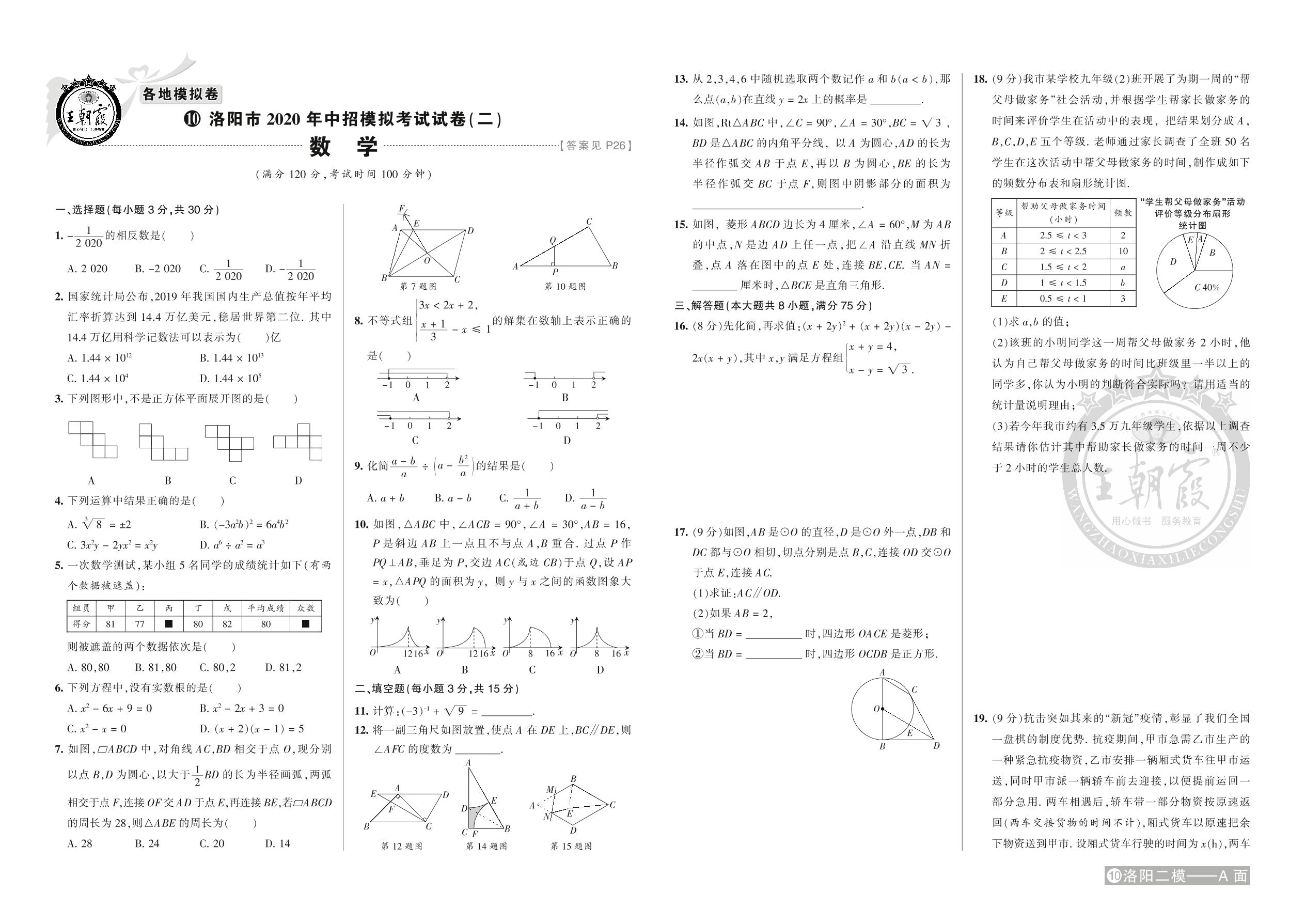 洛阳市2020年中招模拟考试试卷(二)数学【10】