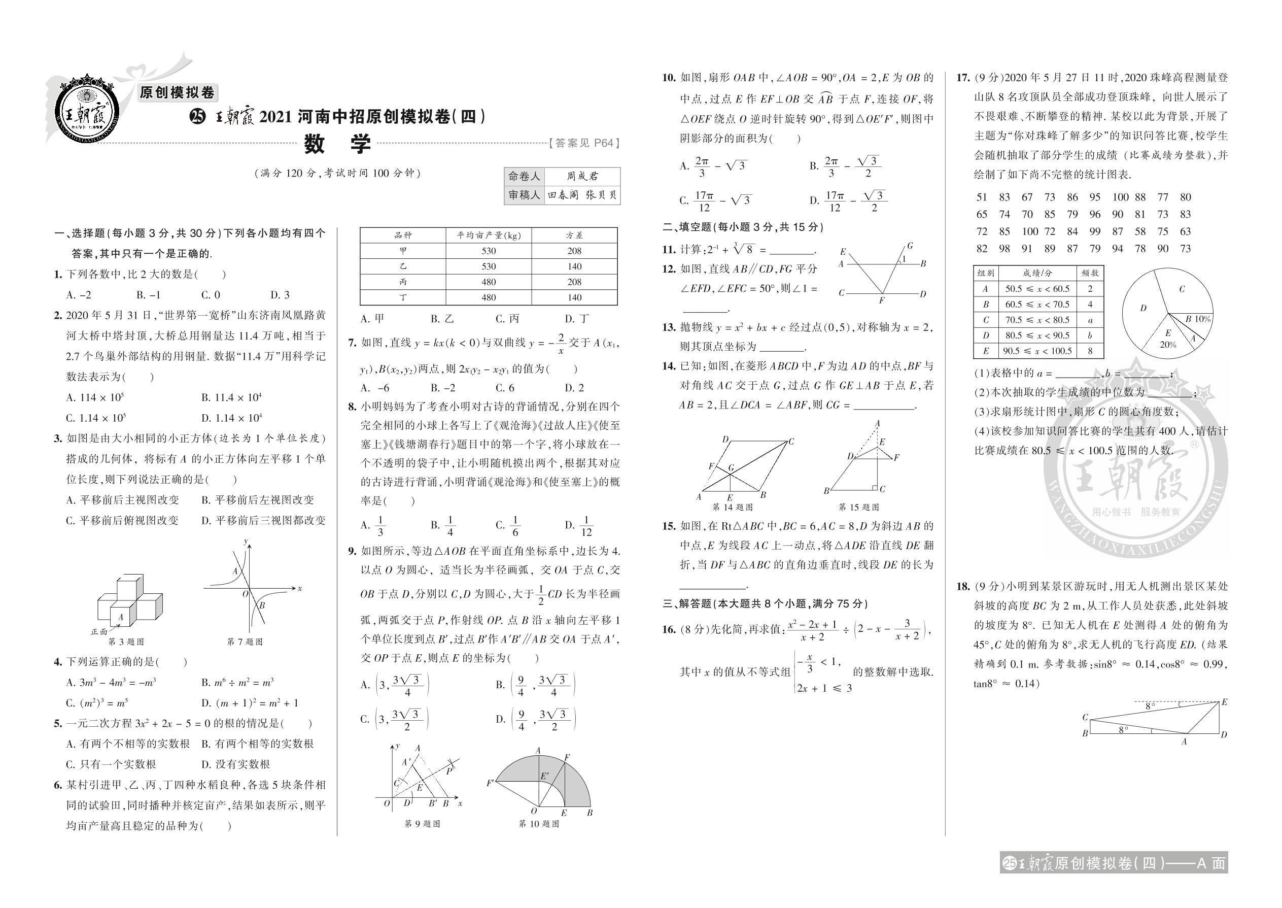 王朝霞2021河南中招原创模拟卷(四)数学【25】