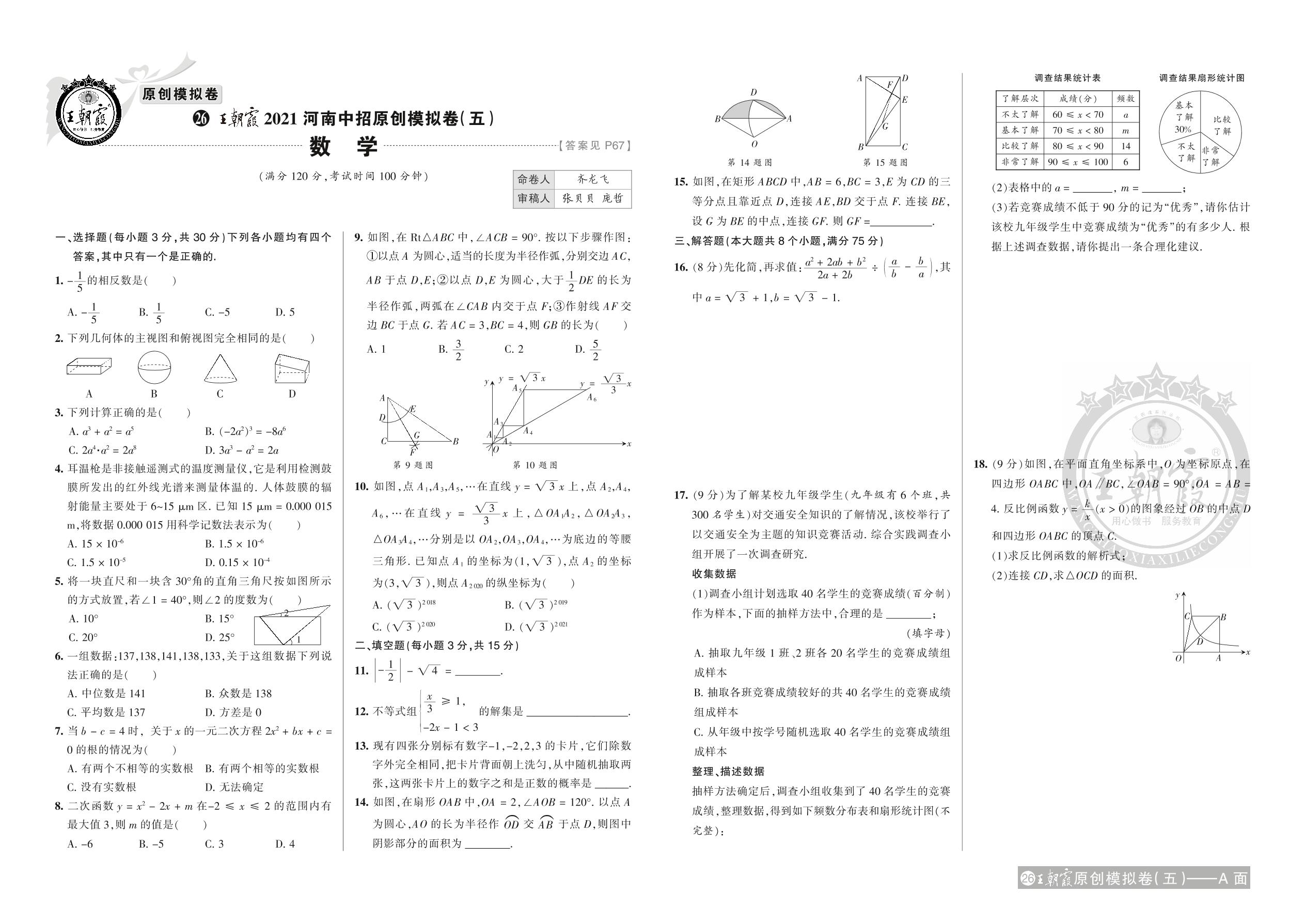 王朝霞2021河南中招原创模拟卷(五)数学【26】