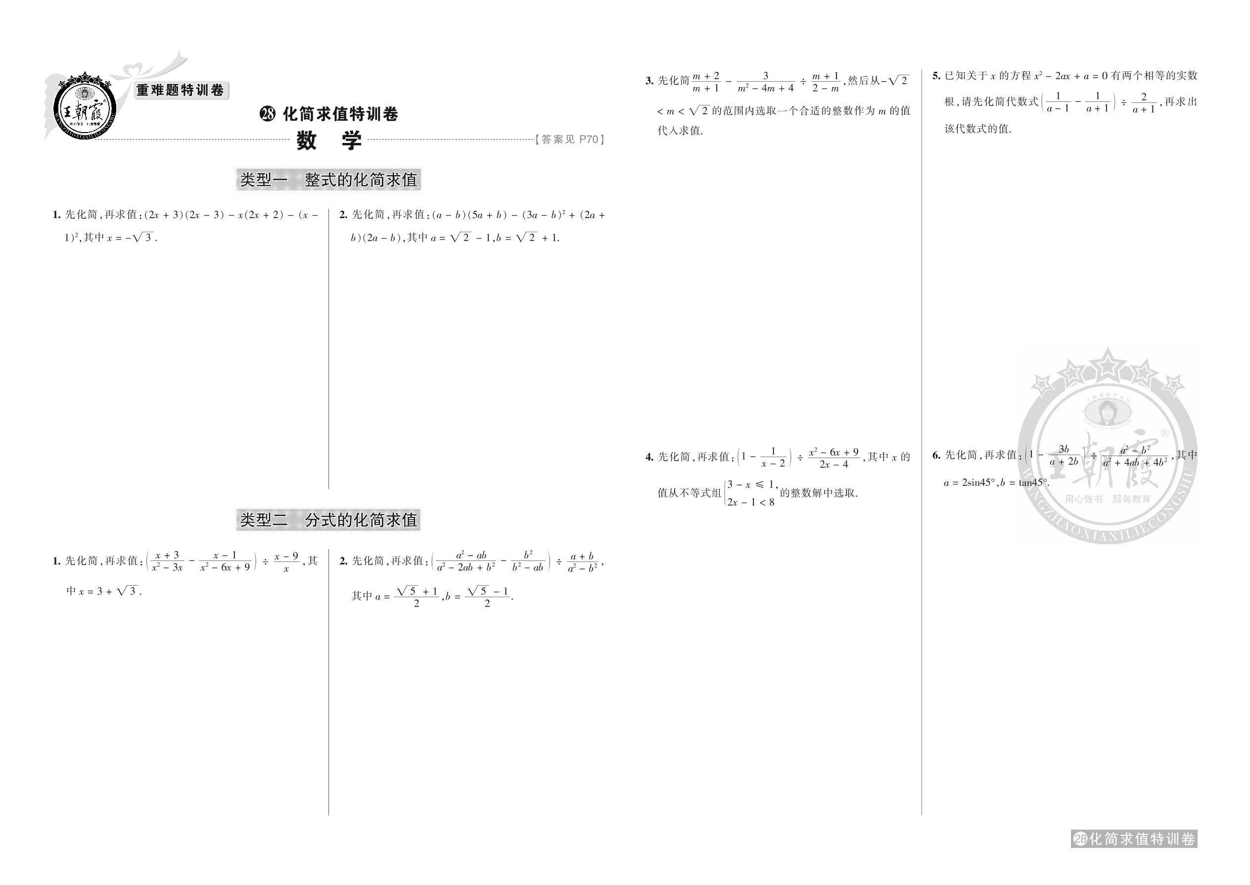 2021年河南中考数学重难题特训卷——化简求值【28】