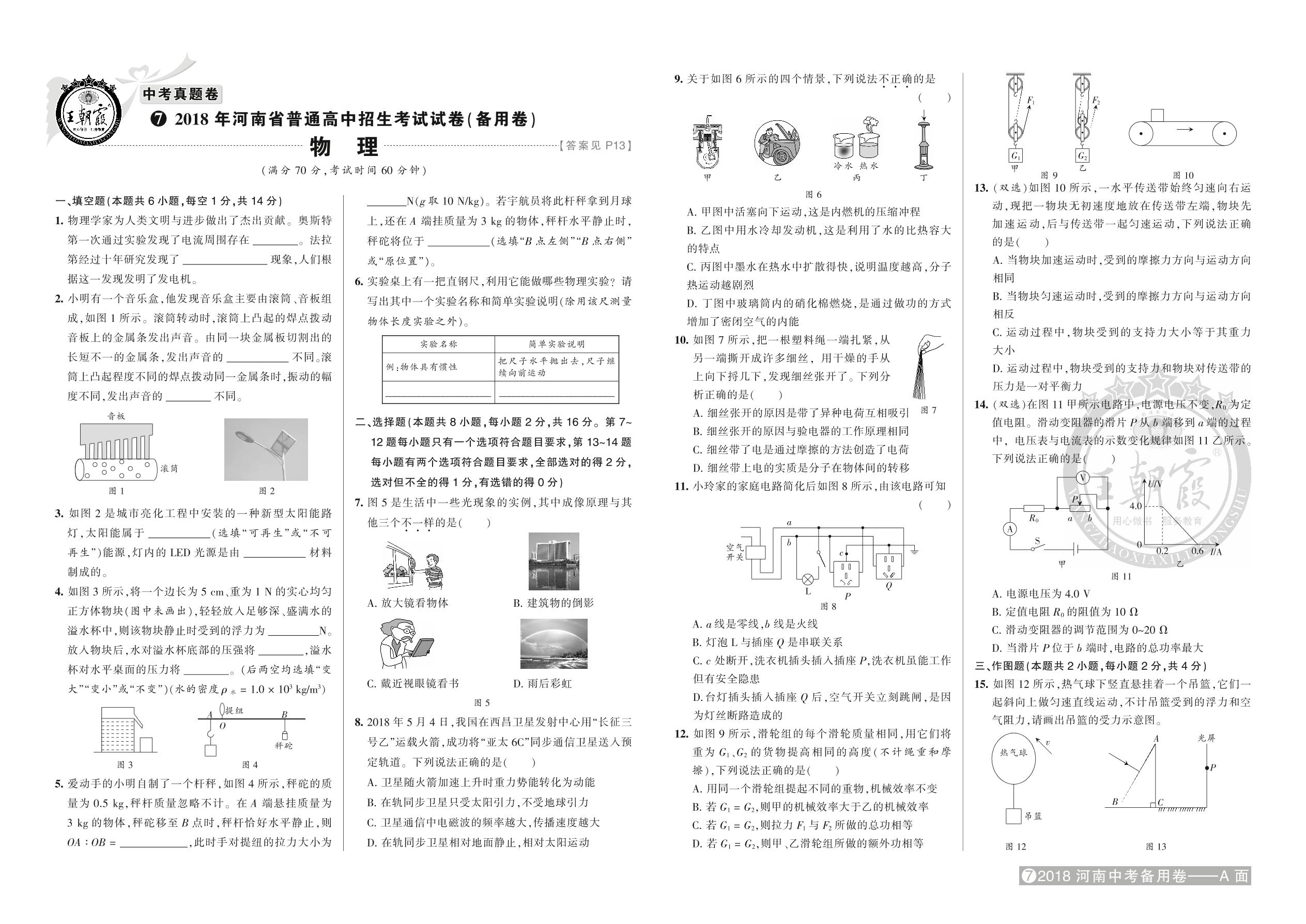 2018年河南省普通高中招生考试试卷物理(备用卷)【7】