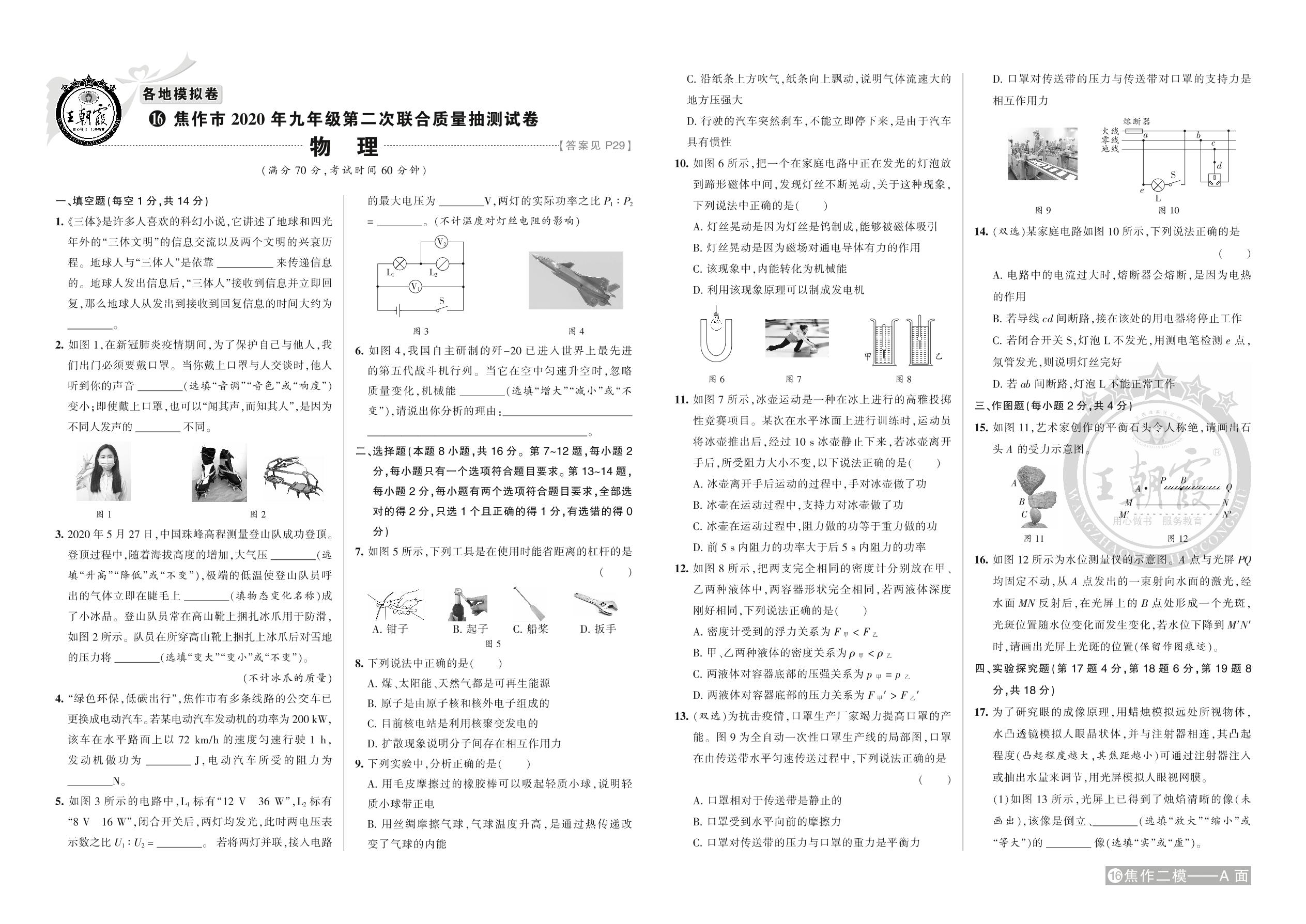 焦作市2020年九年级第二次联合质量抽测试卷物理【16】