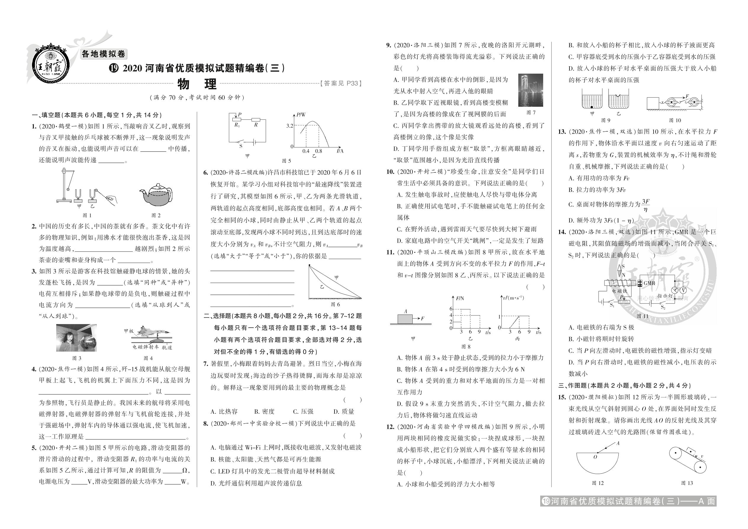 2020河南省优质模拟试题精编卷(三)物理【19】