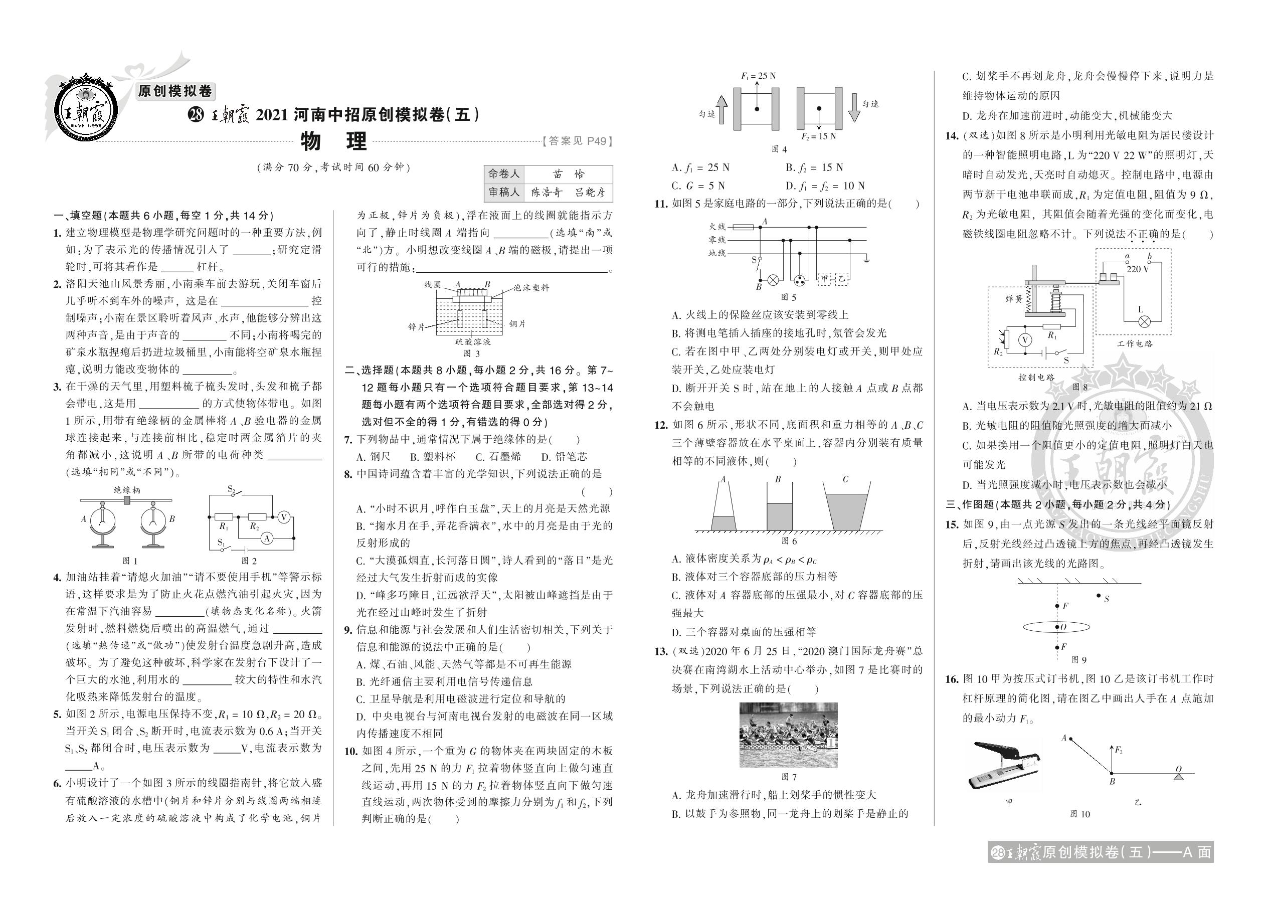 王朝霞2021河南中招原创模拟卷(五)物理【28】