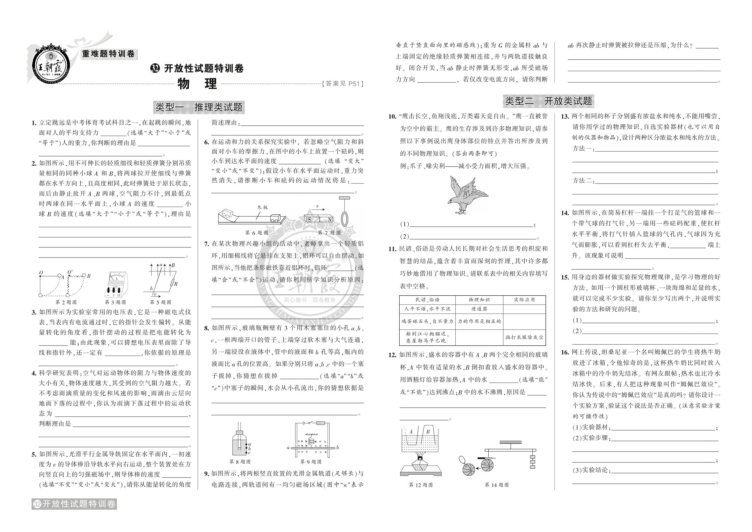 2021年河南中考物理重难题特训卷——开放性试题【32】