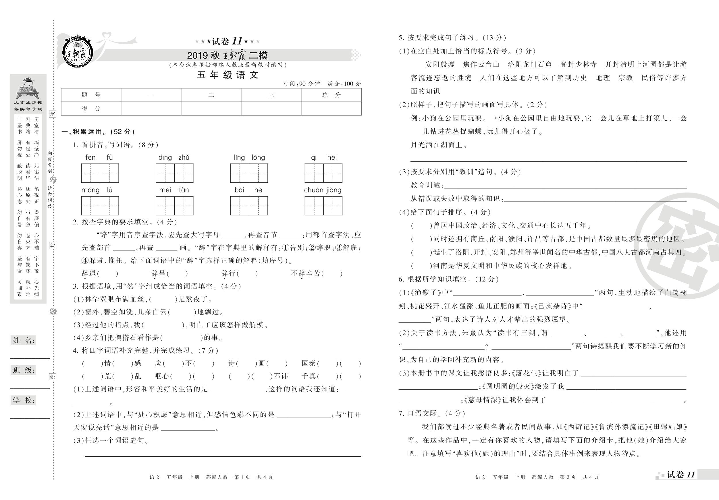 王朝霞期末模拟卷五年级上册语文(人教版)_R210801200223【11】