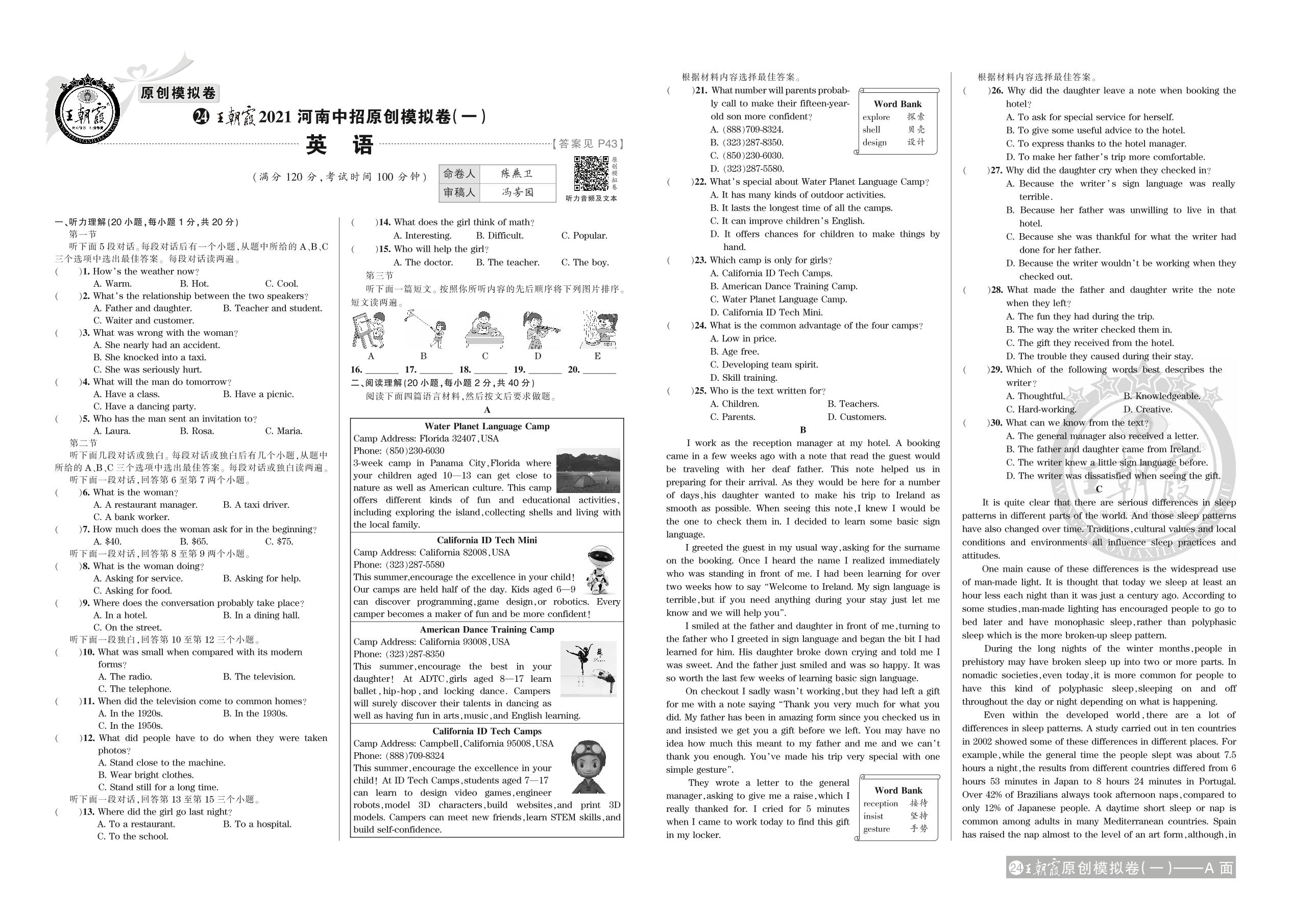 王朝霞2021河南中招原创模拟卷(一)英语【24】