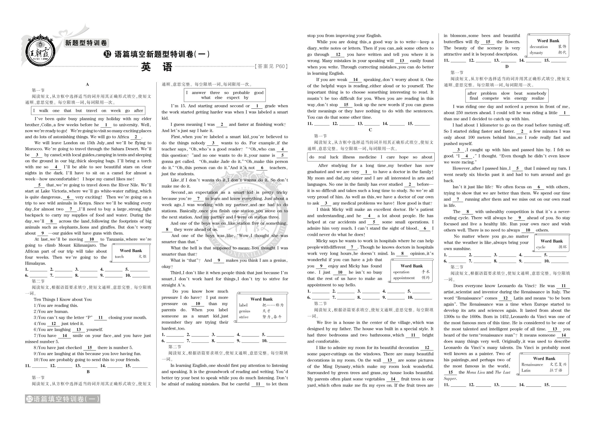 2021年河南中考英语新题型特训卷——语篇填空(一)【32】