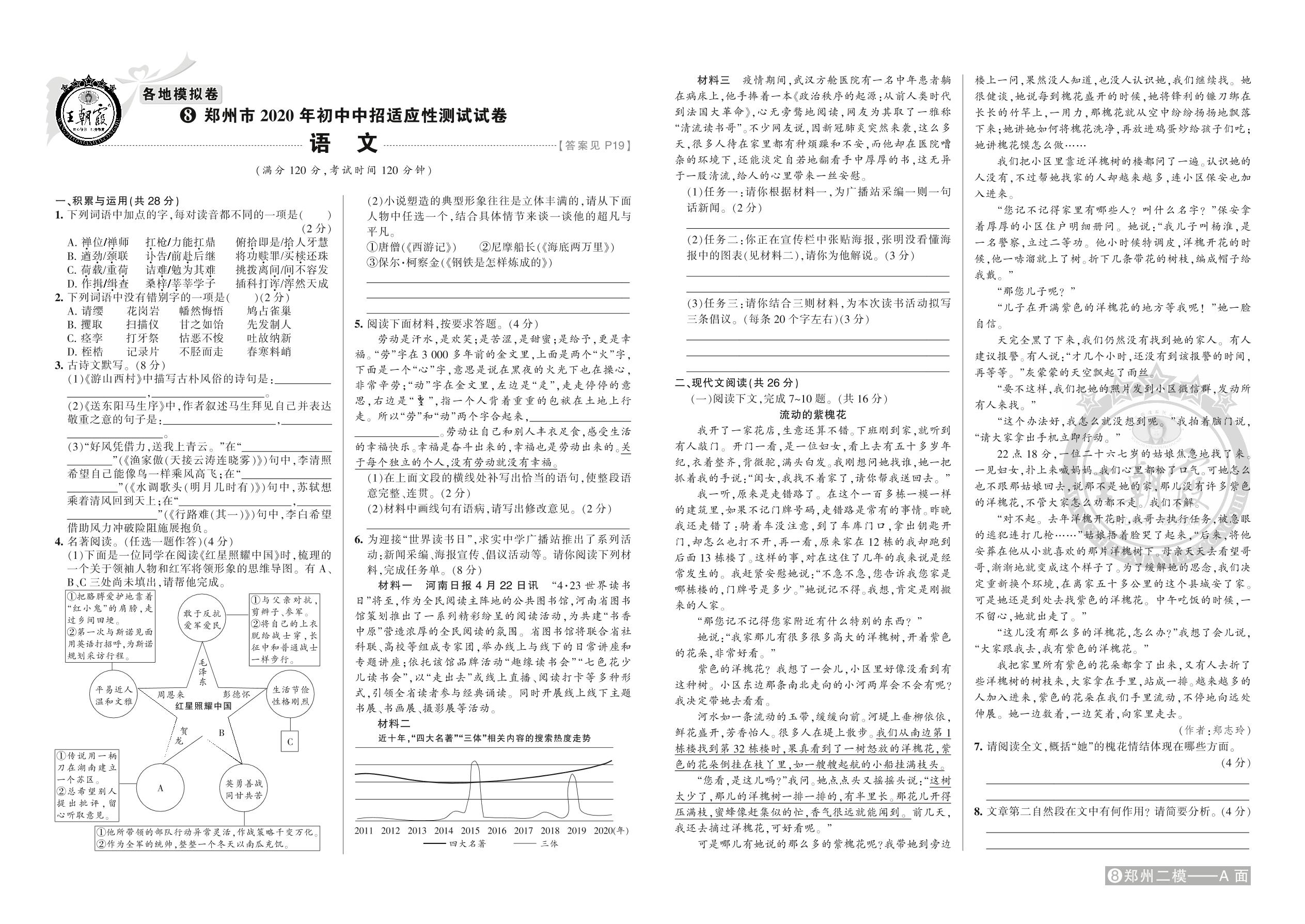 郑州市2020年初中中招适应性测试试卷语文【8】