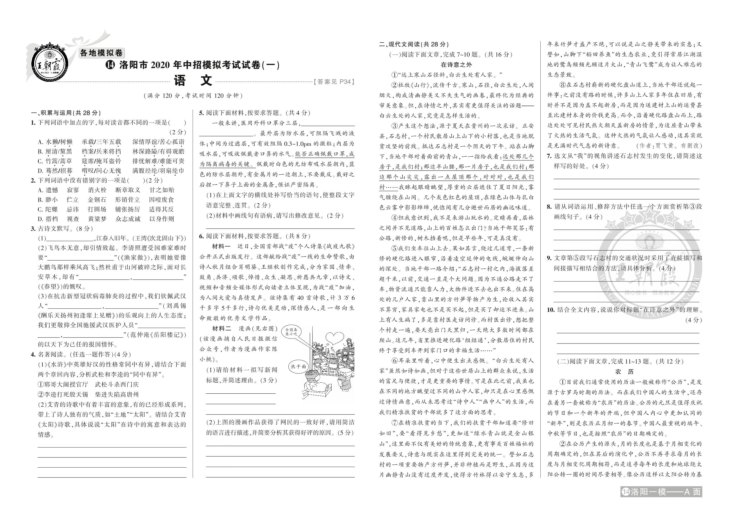 洛阳市2020年中招模拟考试试卷(一)语文【14】