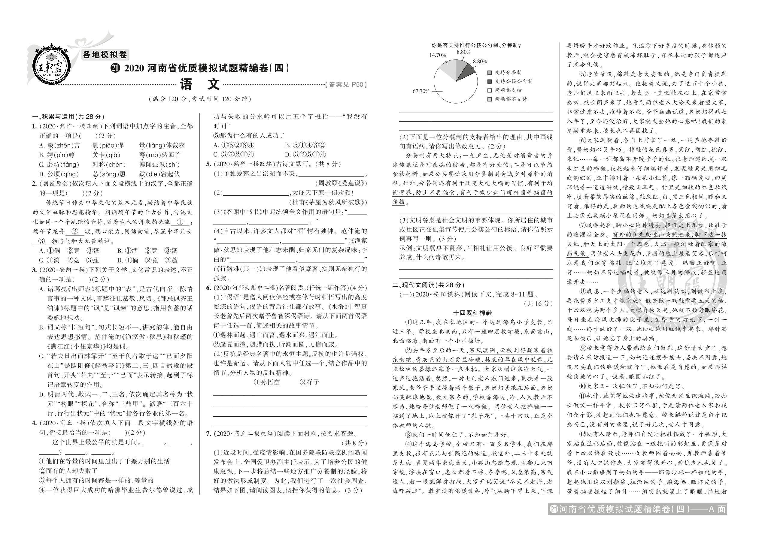 2020河南省优质模拟试题精编卷(四)语文【21】