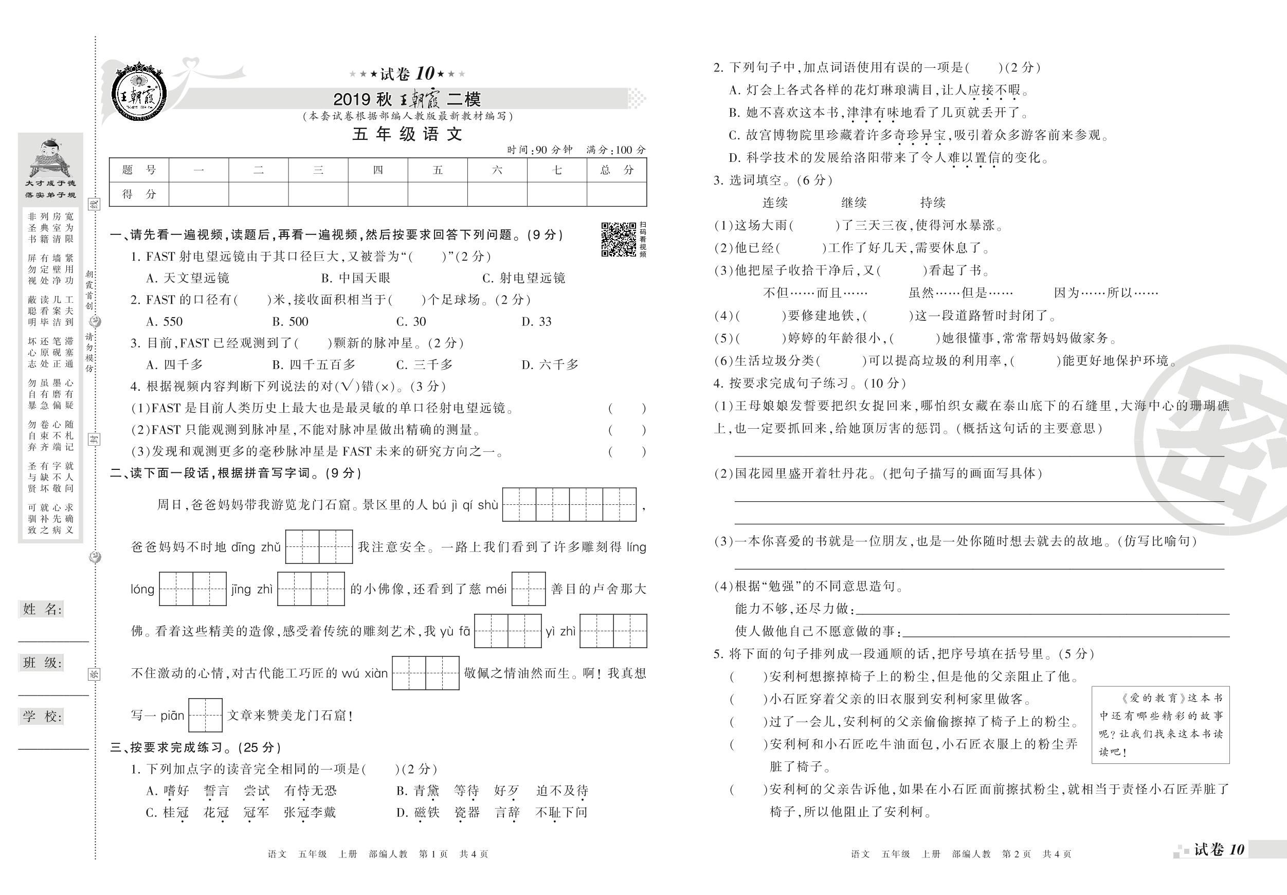 王朝霞期末模拟卷五年级上册语文(人教版)_R210801200309【10】