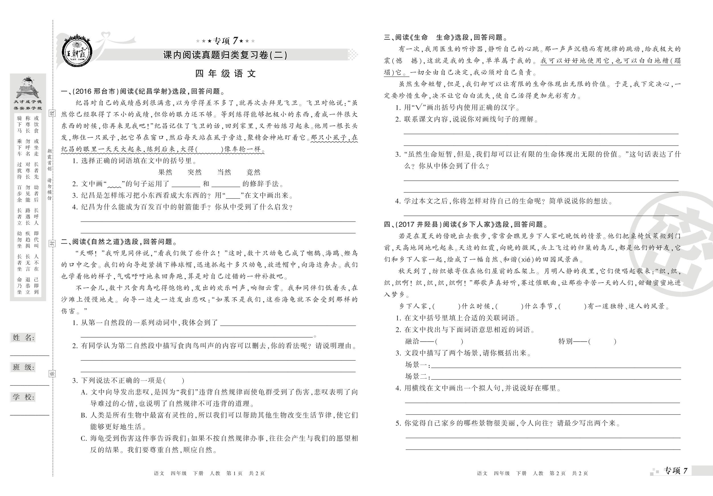 王朝霞期末专项卷四年级下册语文(人教版)_R210801200424【0】