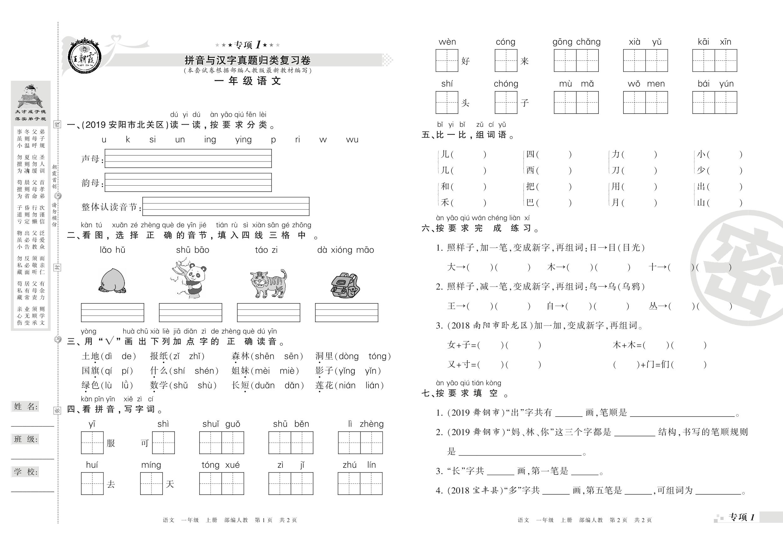 王朝霞期末专项卷——拼音与汉字、词语与句子真题归类复习卷一年级上册语文(人教版)_R210731181448【0】