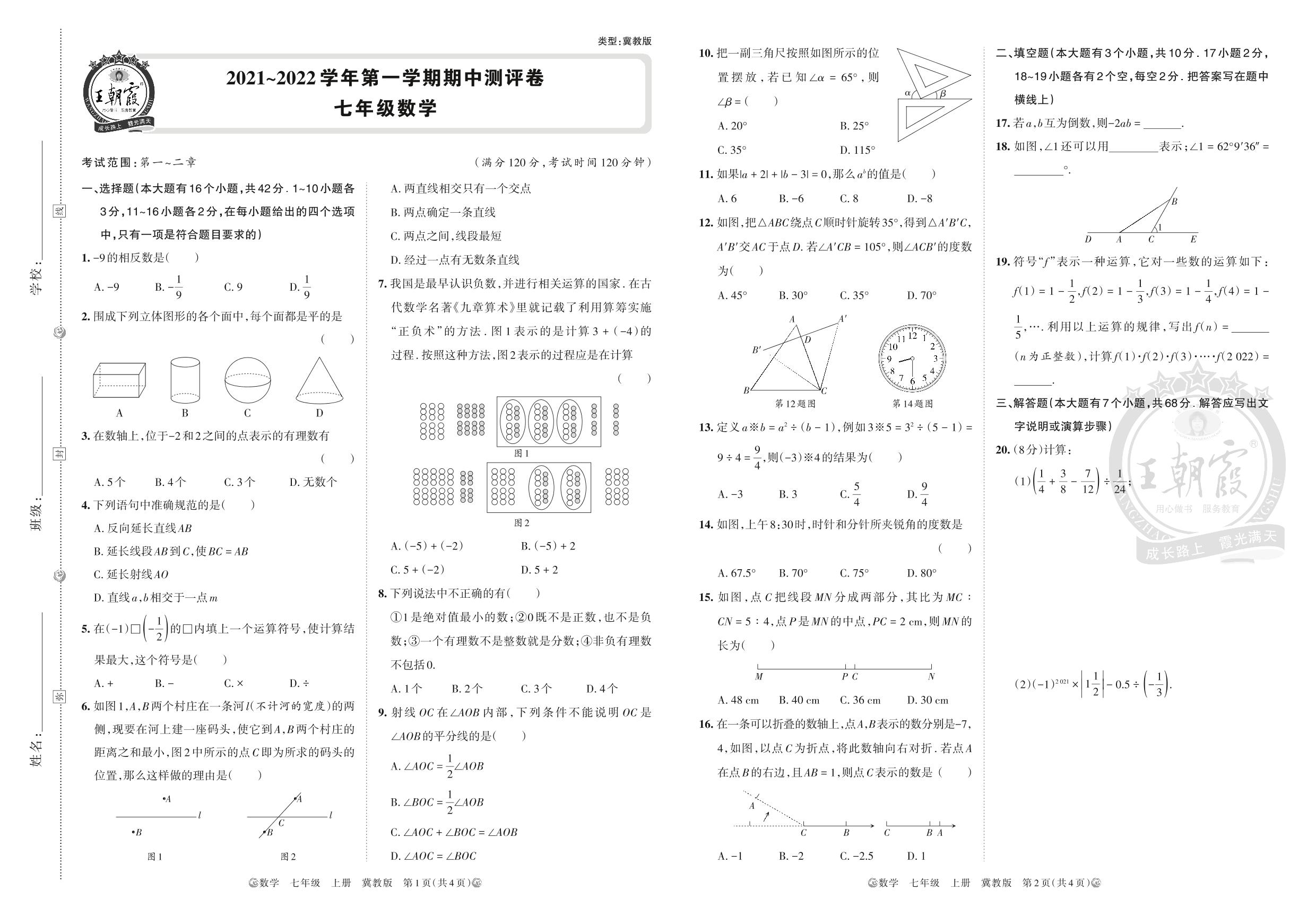 2021~2022学年第一学期期中测评卷 七年级数学(冀教版)