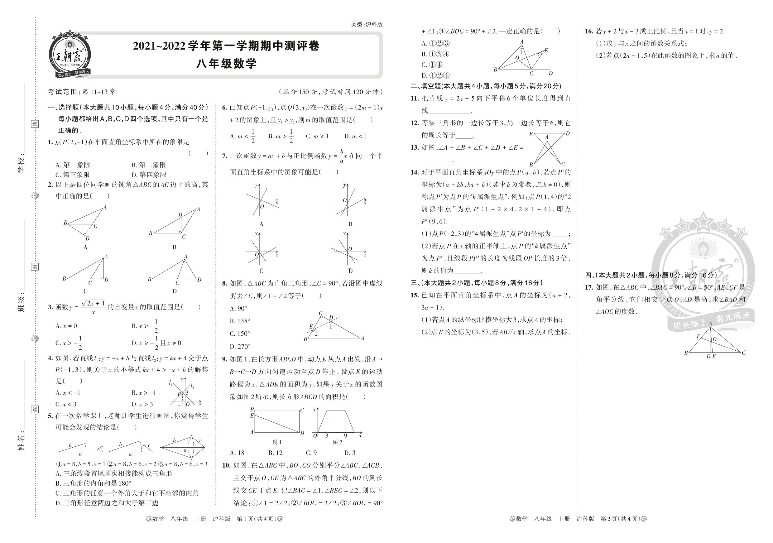2021~2022学年第一学期期中测评卷 八年级数学(沪科版)