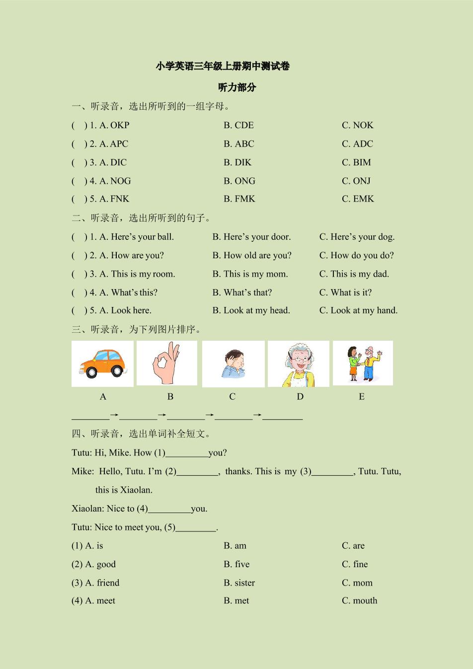 广东省广州市小学英语三年级上册期中测试卷(教科版)【无听力音频】