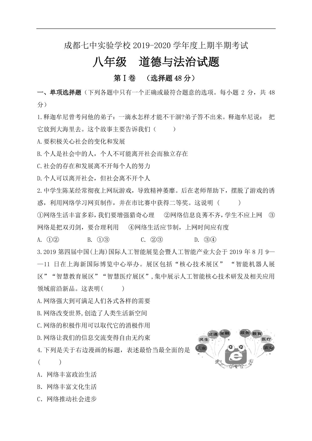 四川省成都七中实验学校2019-2020学年度上期半期考试八年级道德与法治试题人教版