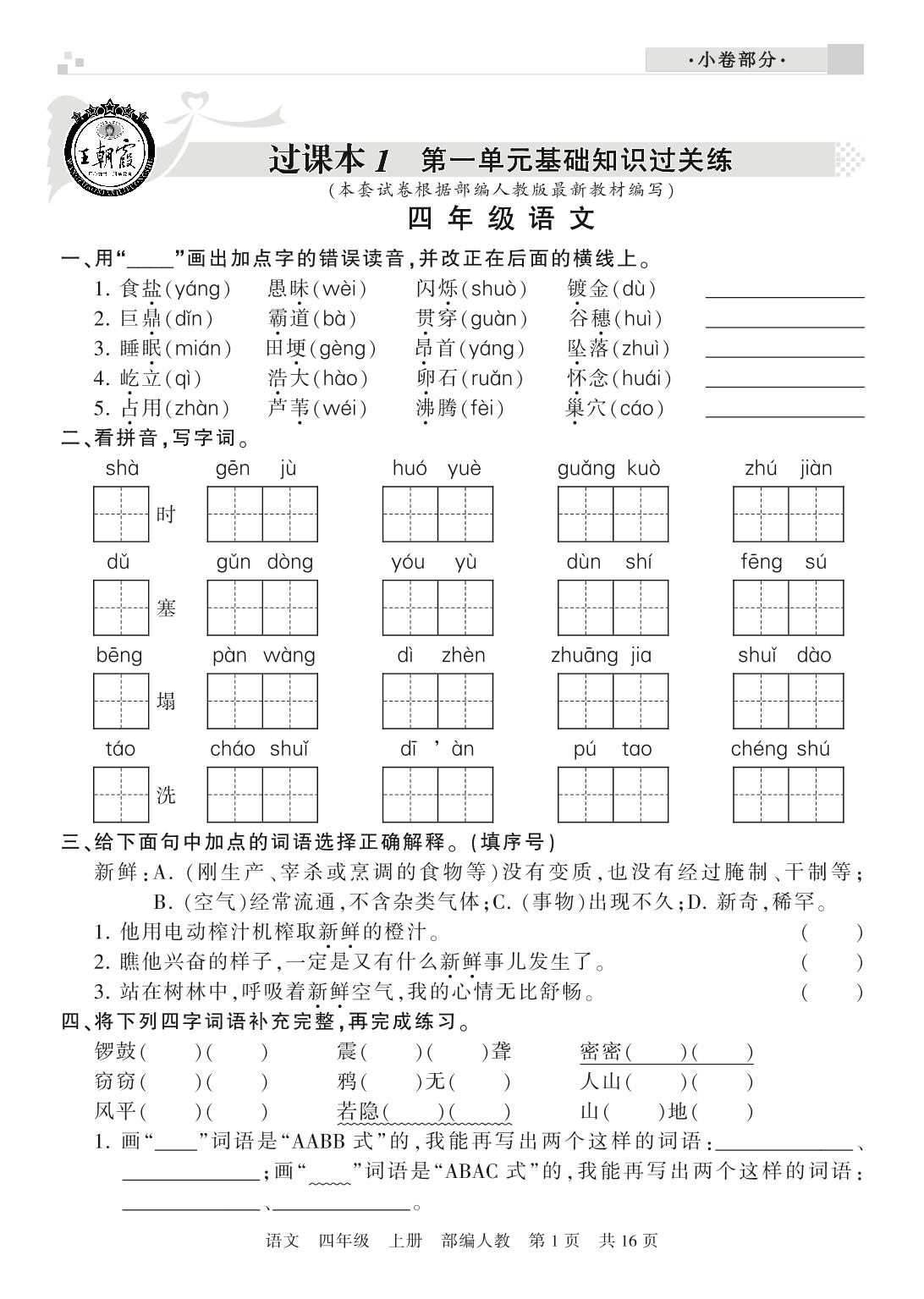 王朝霞期末过课本——基础知识过关练四年级上册语文(人教版)_R210801201042【0】