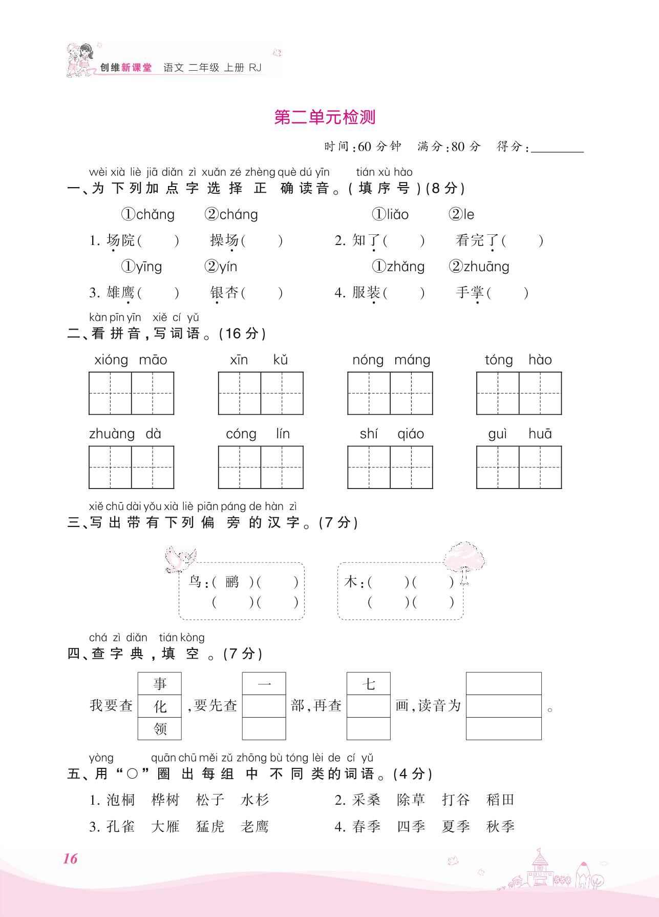 二年级语文人教版上册单元卷