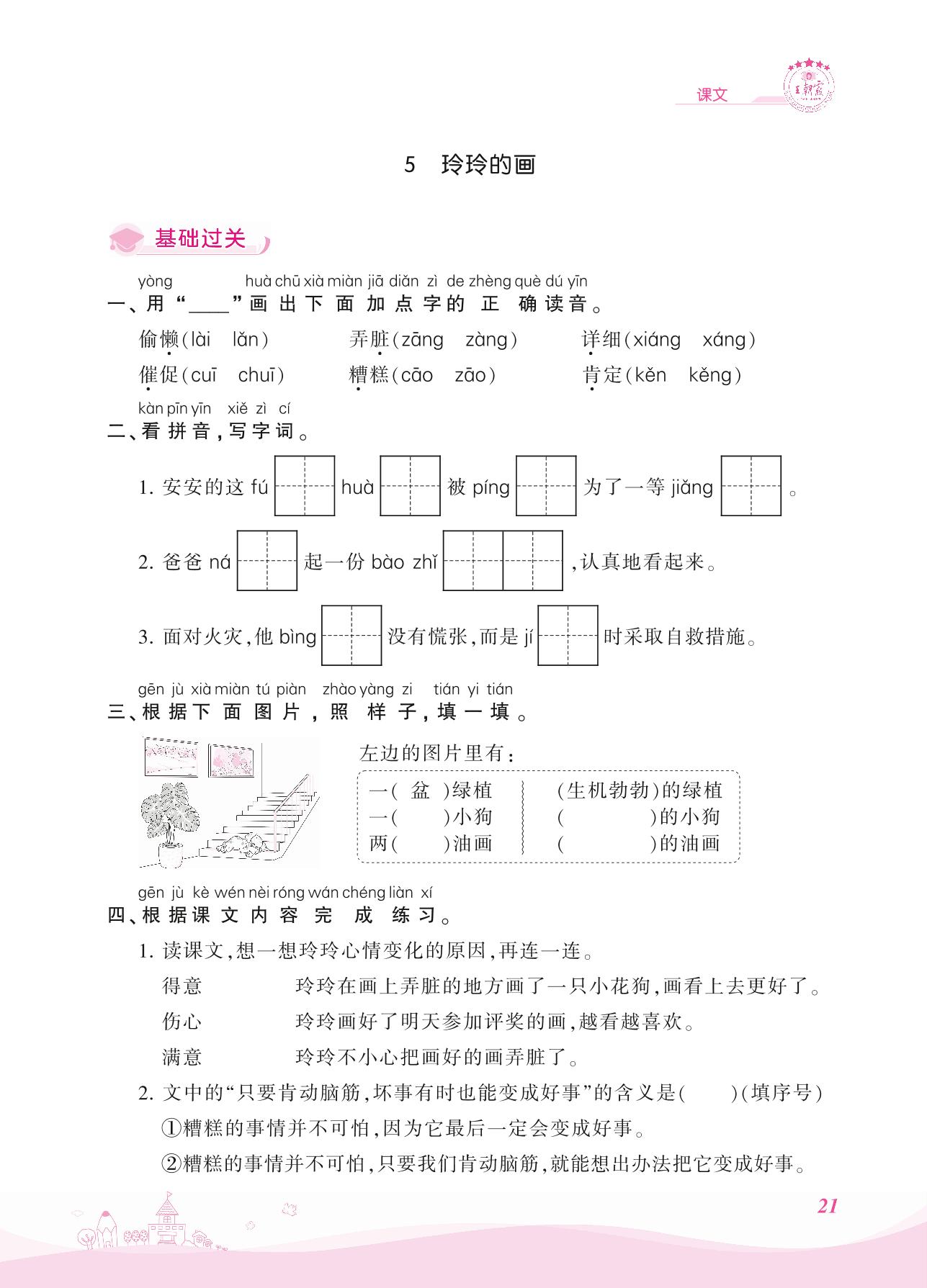 2021上册二年级语文人教版 第三单元 课文——5 玲玲的画