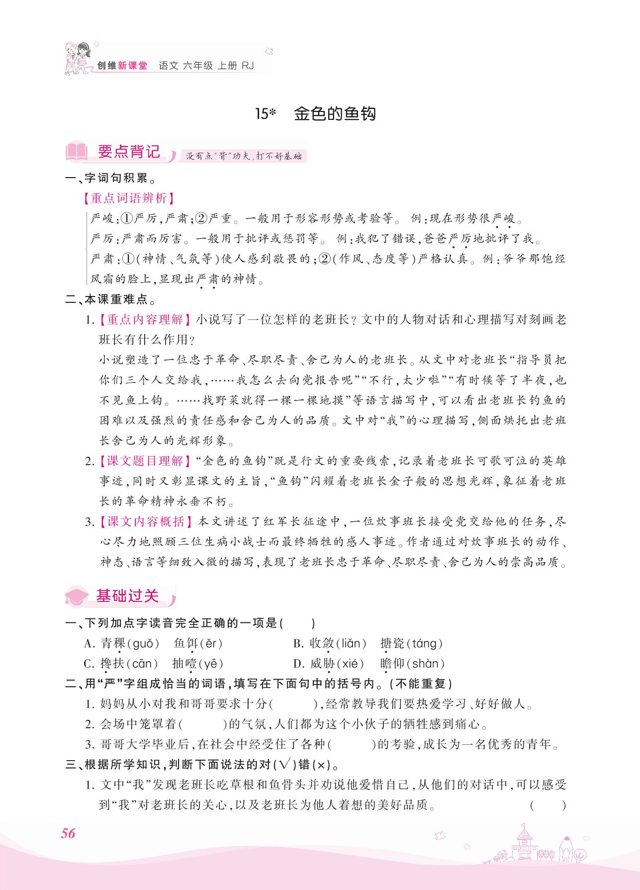 2021上册六年级语文人教版 第四单元——15 金色的鱼钩
