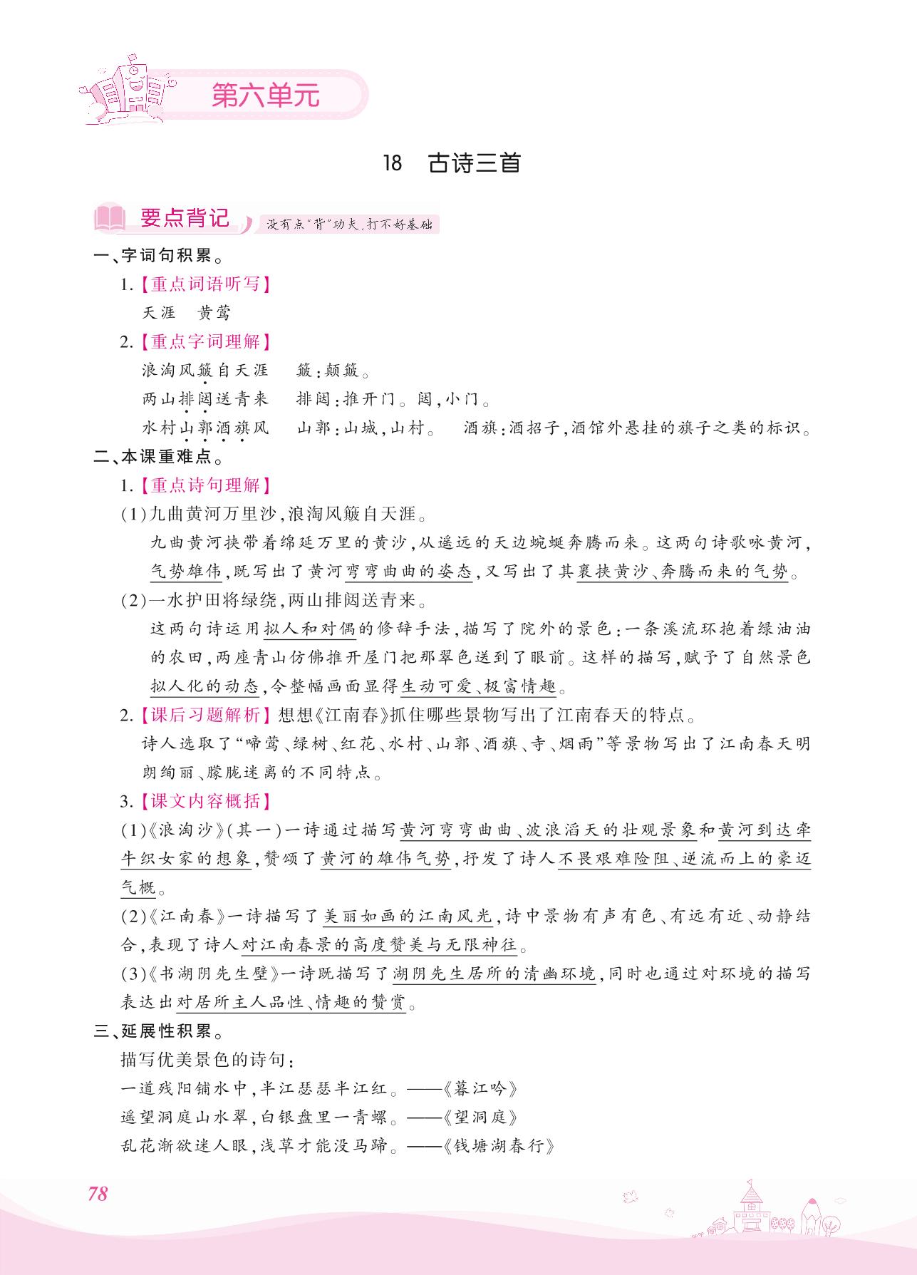 2021上册六年级语文人教版 第六单元——18 古诗三首
