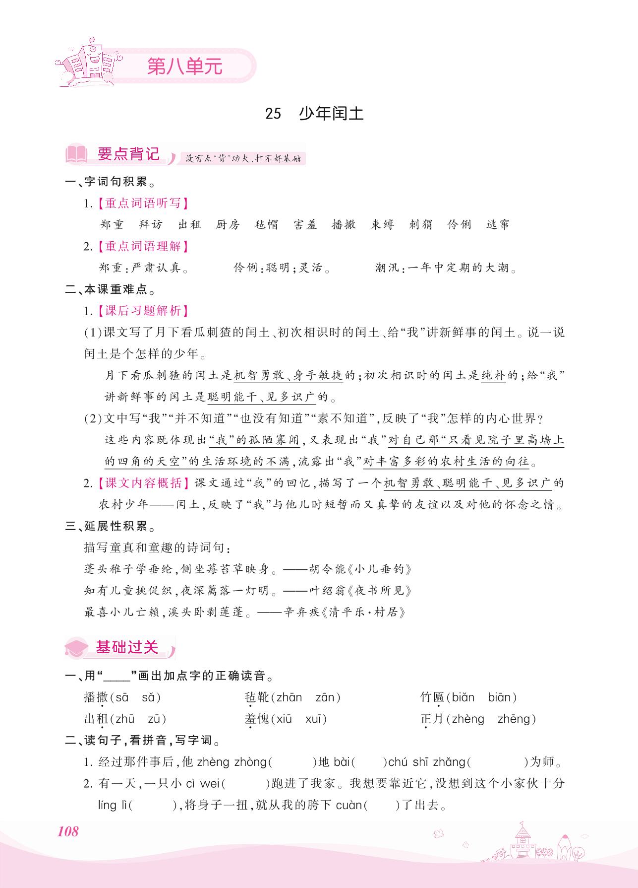 2021上册六年级语文人教版 第八单元——25 少年闰土